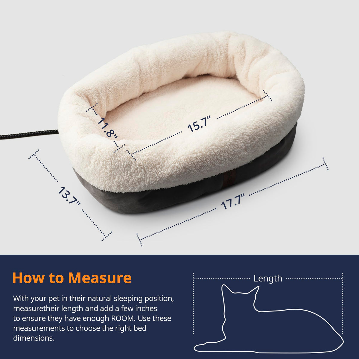 Petace Heated Pet Bed For Cats Creates A Secure Enclosure For Your Cat To Snuggle In And Provides Extra Warmth With A Temperature-Adjustable Controller. You Can Also Easily Adjust The Heat Output From Low To High Within 6 Levels. Features Auto Shut Off Timer Function, Ability To Set The Time Off From 4 Time Ranges, And Conserve Energy. Great For Cats Of All Ages And Sizes And Small Dogs That Demand A Warm Spot. The Heating Pad Can Be Removed From The Sleeping Surface Of The Bed For Better Compatibility With Different Needs. For Indoor Household Use With 110/120 Volt Electrical Current Only. Material Soft Sherpa Fabric Covered In Durable Suede Fabric. Filled With Extra-Thick Polyester Polyfill For Maximum Comfort. Dimensions Product: 17.7 X 13.7 In (45 X 35 Cm) Sleeping Surface Area: 15.7 X 11.8 In (40 X 30 Cm) Power Cable: 7 Ft. Maintenance Machine Wash Separately, Cool Water, Wash Max 30C, Tumble Dry Low, Do Not Iron & Bleach, Mild Detergent, Fluff Dry, Reshape As Needed. For Best Results, Use Front Loading, Large Capacity, Commercial Machines And Hang To Dry.