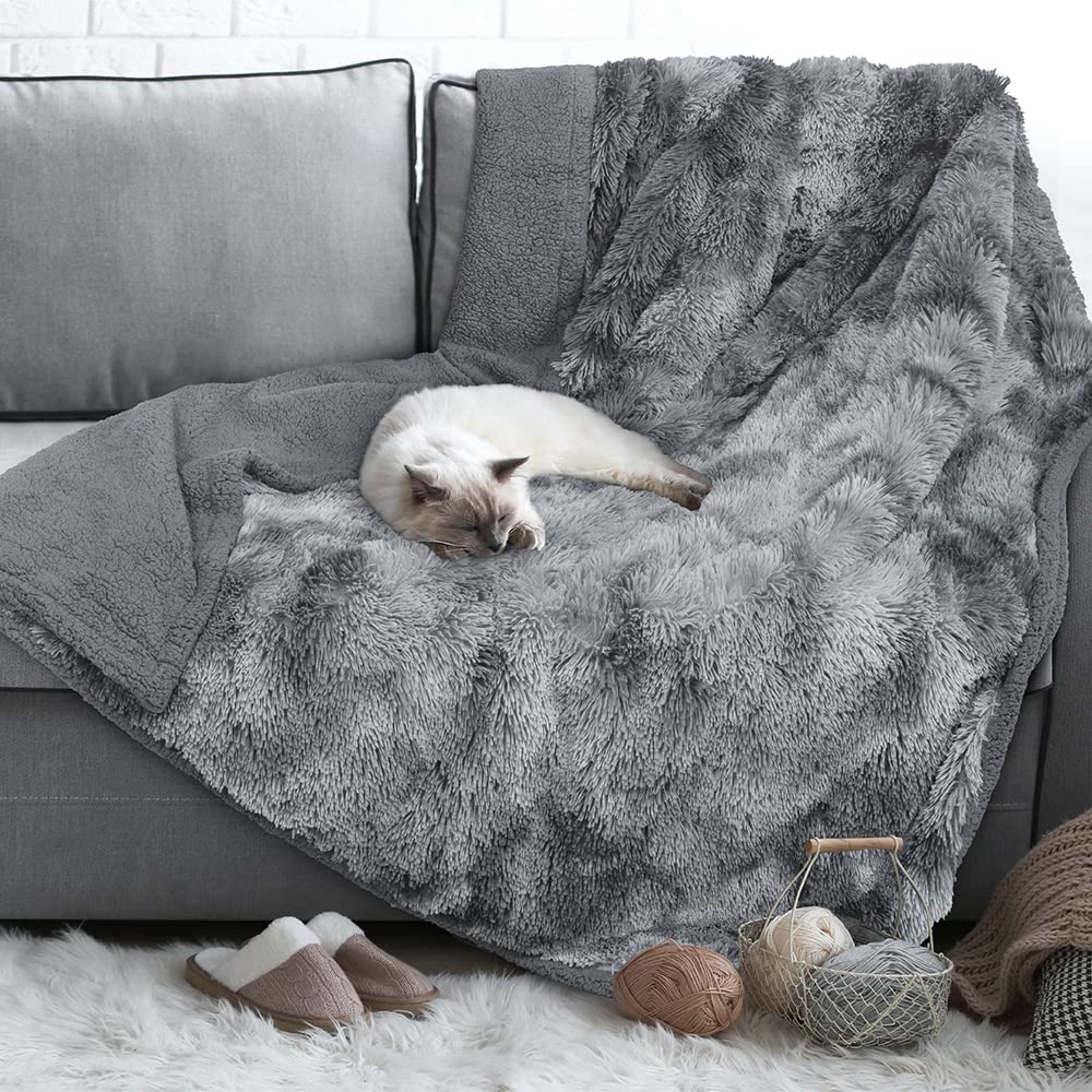 Petami Fluffy Waterproof Dog Blanket | Faux Fur Pet Fleece Shag Throw For Dogs And Cats | Fuzzy Furry Soft Plush Sherpa Throw Furniture Protector Sofa Couch Bed (Tie-Dye Gray, 29X40)