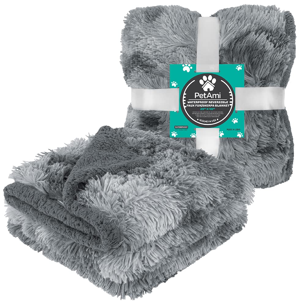 Pamper your pet with this Premium Plush Faux Fur Sherpa Pet Blanket by PetAmi. 100% WATERPROOF, this is the ideal pet blanket to help protect your home goods and furniture. This blanket is made from soft furry vegan fur, plush fabric, and cozy Sherpa lining, ensuring your best bud will get the best sleep every day.