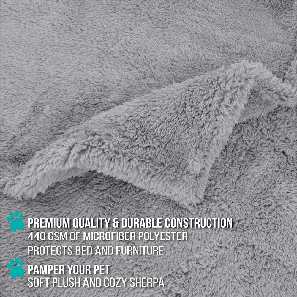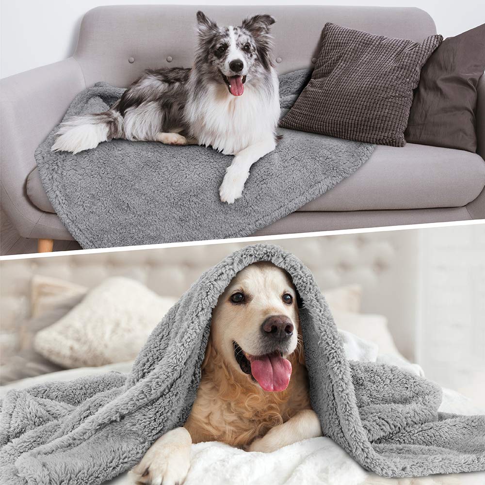 Petami Fluffy Waterproof Dog Blanket For Bed Large Dogs, Soft Warm Pet Sherpa Throw Pee Proof Couch Cover, Reversible Cat Blanket Sofa Crate Kennel Protector, Washable Mat (Light Grey, 60X80)