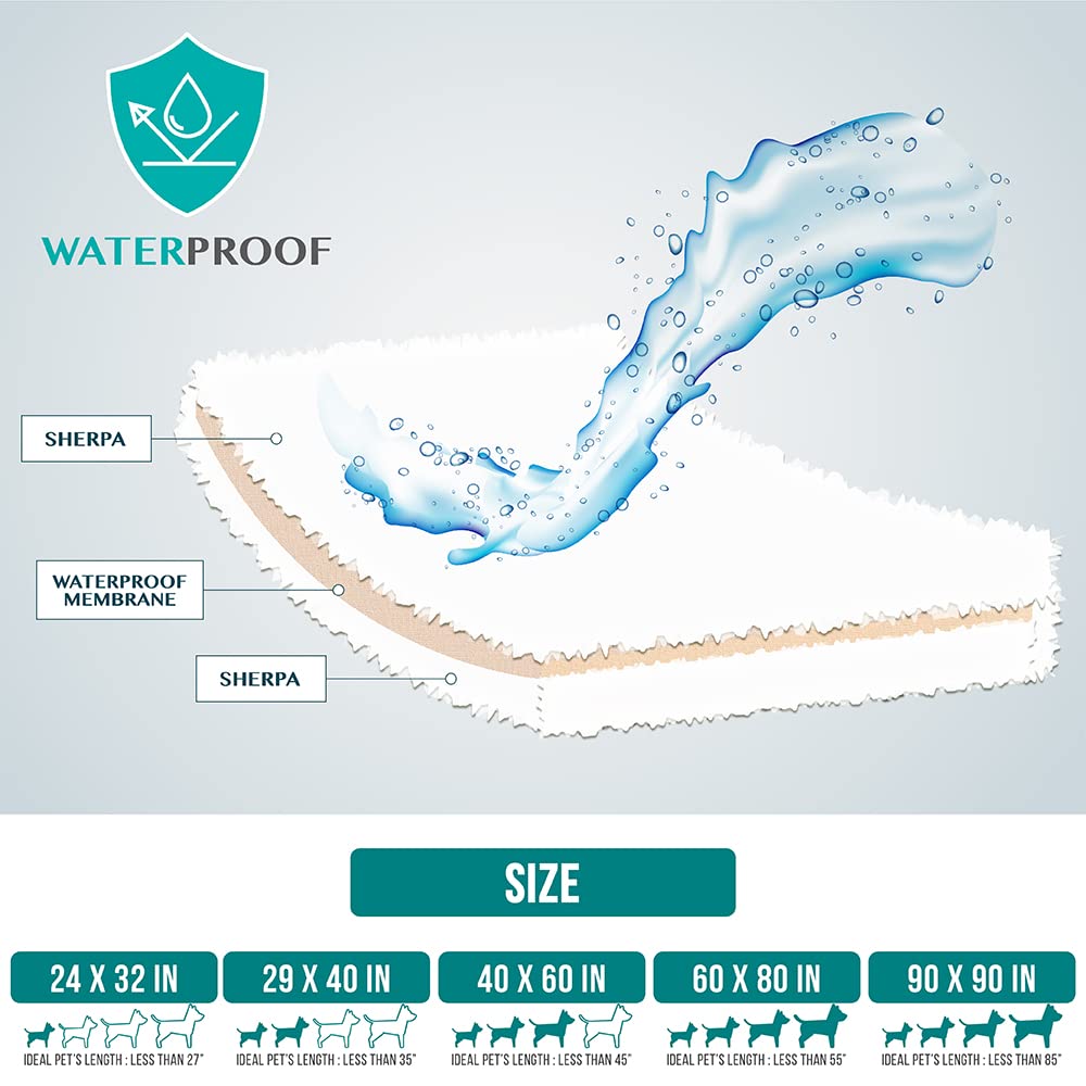 100% WATERPROOF This high-quality pet blanket protects your furniture and upholstery from spills, drool, and urine. You no longer have to worry about your pet wetting your bed or sofa!