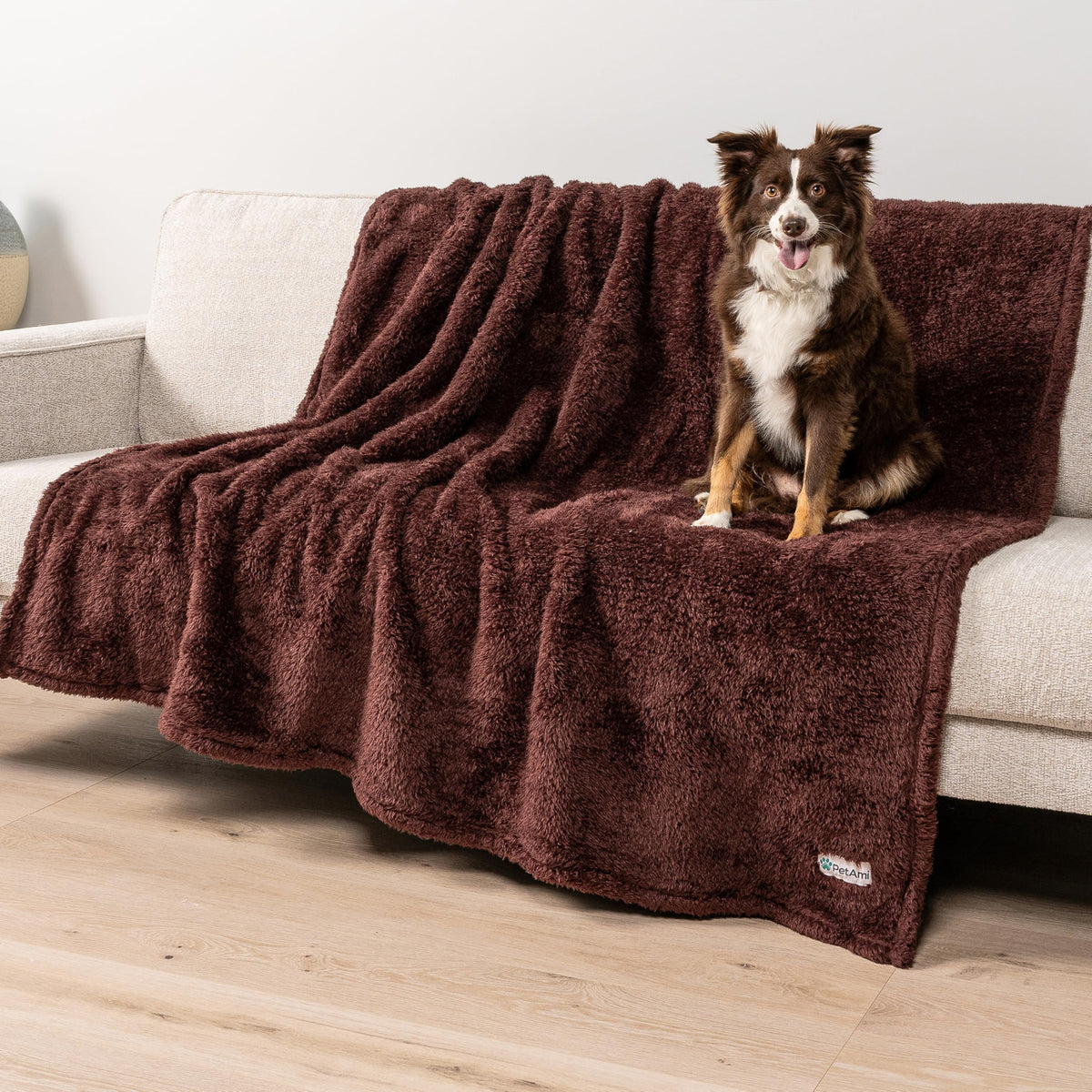 Petami Fluffy Waterproof Dog Blanket For Bed Large Dogs, Soft Warm Pet Sherpa Throw Pee Proof Couch Cover, Reversible Cat Blanket Sofa Crate Kennel Protector, Washable Mat Queen (Brown, 90X90)