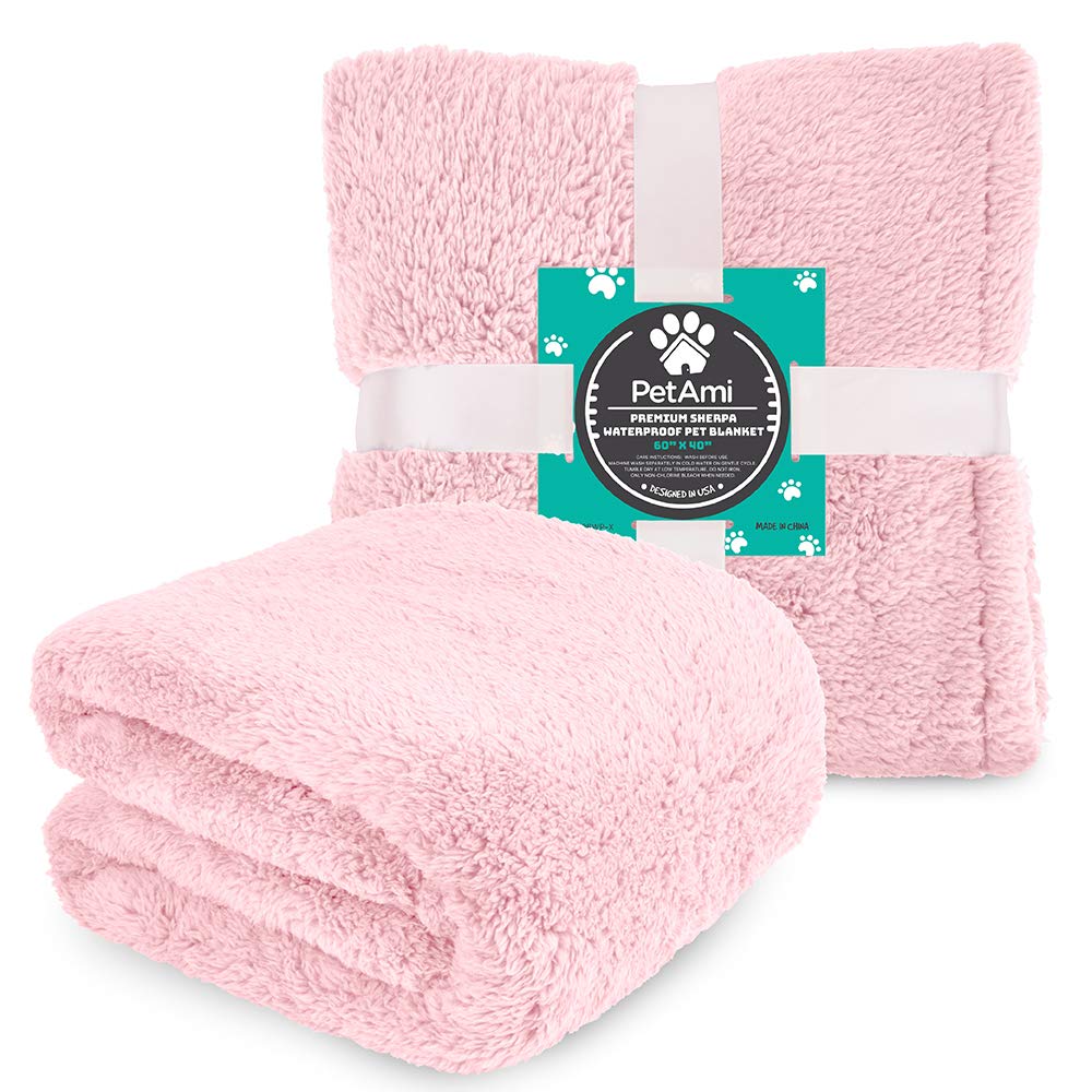Petami Fluffy Waterproof Dog Blanket For Medium Large Dogs, Soft Warm Pet Sherpa Throw Pee Proof Couch Cover, Reversible Cat Bed Blanket Sofa Protector, Plush Washable Pad (Pink Blush, 40X60)
