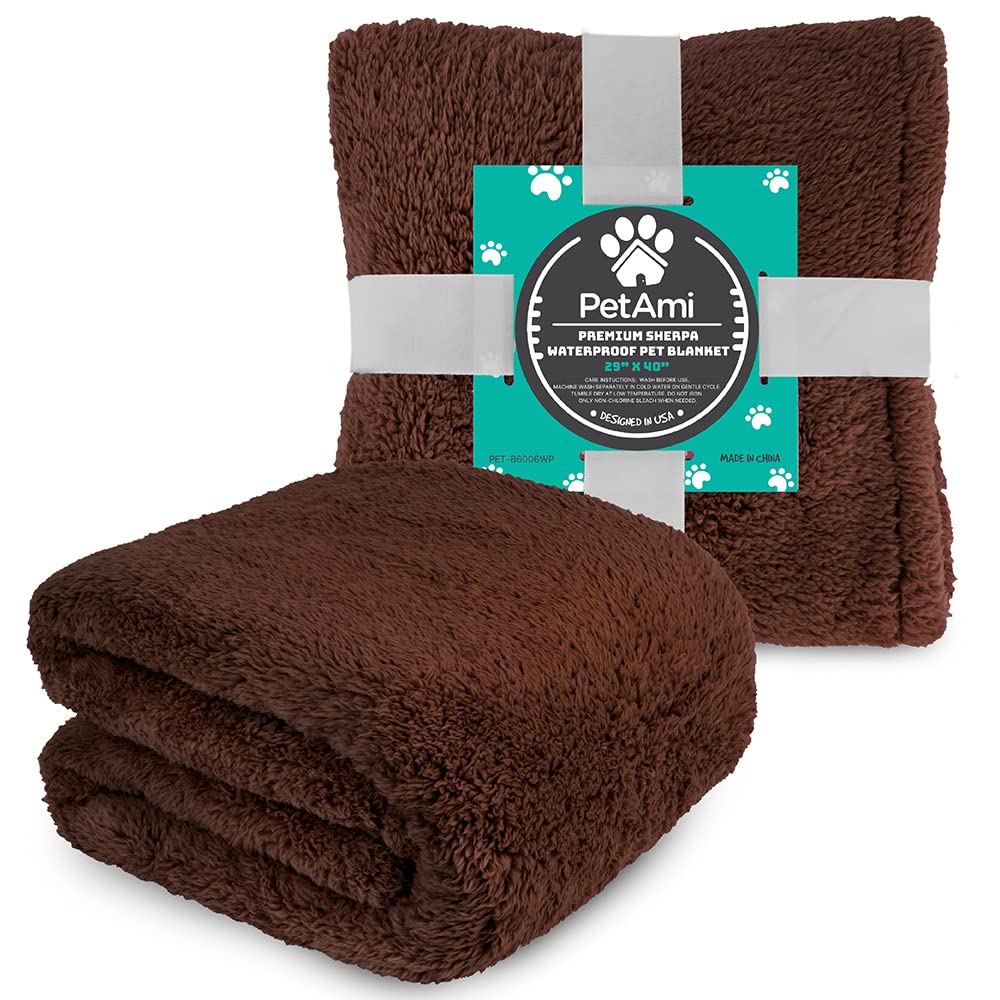 Petami Fluffy Waterproof Dog Blanket For Small Medium Dogs, Soft Warm Pet Sherpa Throw Pee Proof Couch Cover, Reversible Cat Puppy Bed Blanket Sofa Protector, Plush Washable Pad (Brown, 29X40)