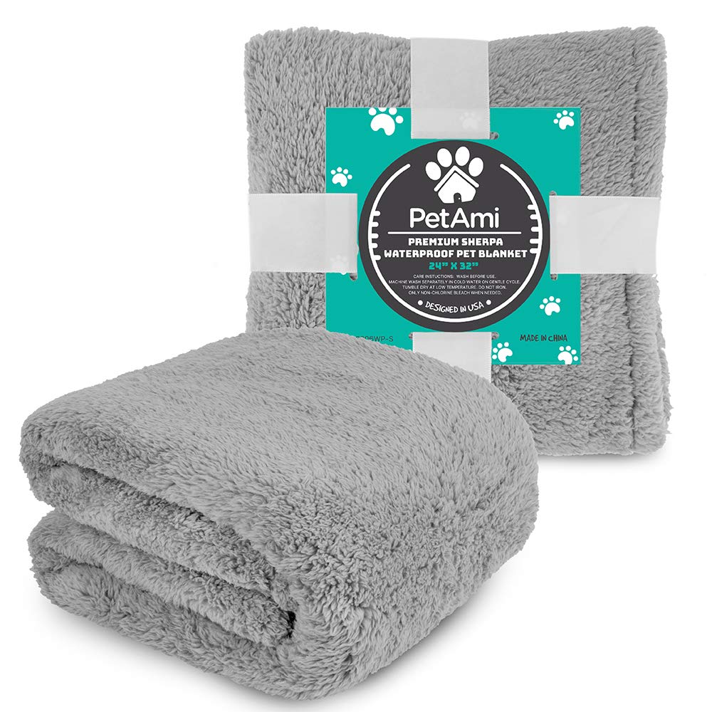 Petami Fluffy Waterproof Dog Blanket For Small Medium Dogs, Soft Warm Pet Sherpa Throw Pee Proof Couch Cover, Reversible Cat Puppy Bed Blanket Sofa Protector, Plush Washable Pad (Light Grey, 24X32)