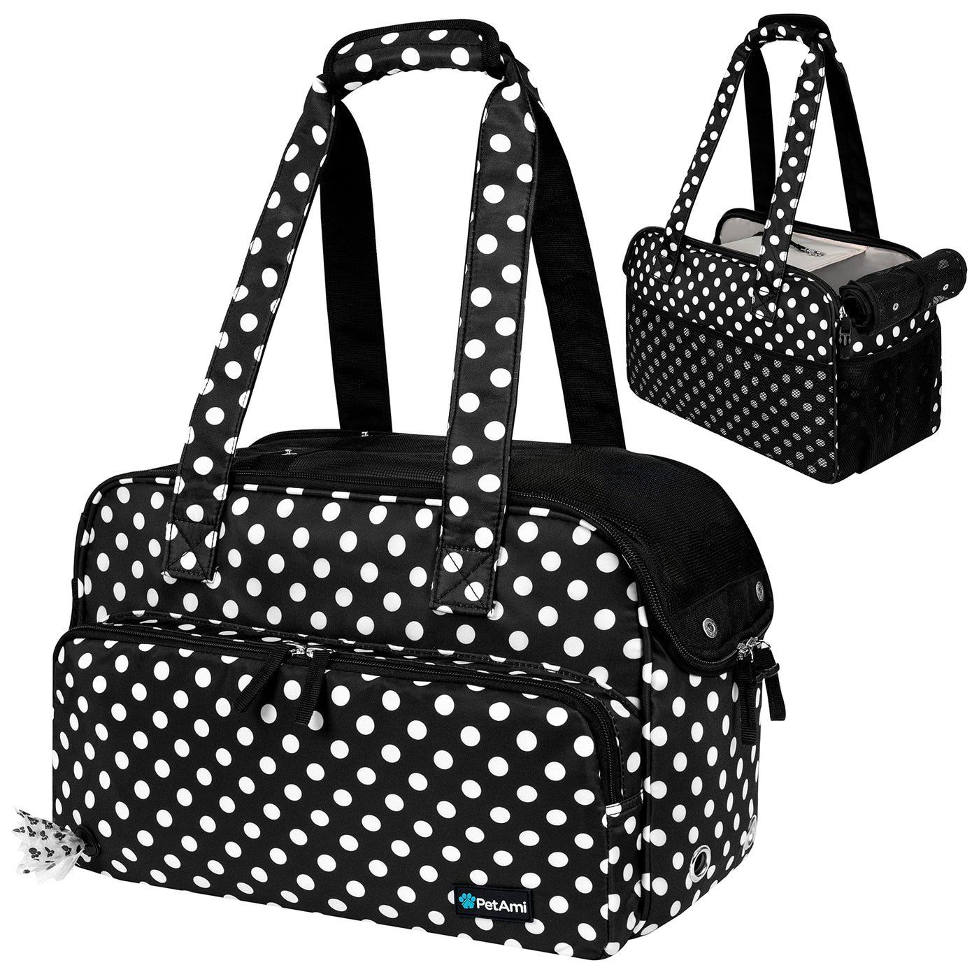 Petami Small Dog Purse Carrier, Soft-Sided Pet Carrier Bag With Pockets, Portable Puppy Cat Travel Handbag Tote, Airline Approved Breathable Mesh, Poop Bag Dispenser, Max 18 Lbs, Polka Dot Black