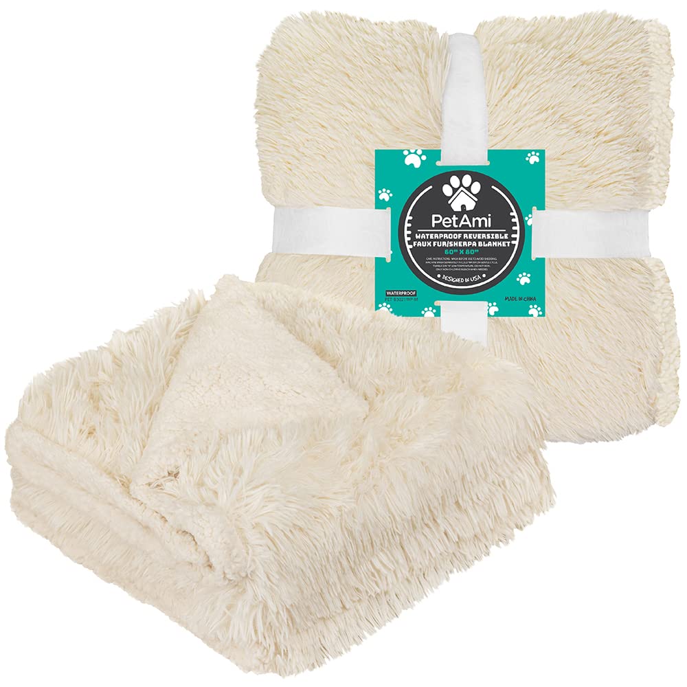 Pamper your pet with this Premium Plush Faux Fur Sherpa Pet Blanket by PetAmi. 100% WATERPROOF, this is the ideal pet blanket to help protect your home goods and furniture. This blanket is made from soft furry vegan fur, plush fabric, and cozy Sherpa lining, ensuring your best bud will get the best sleep every day.