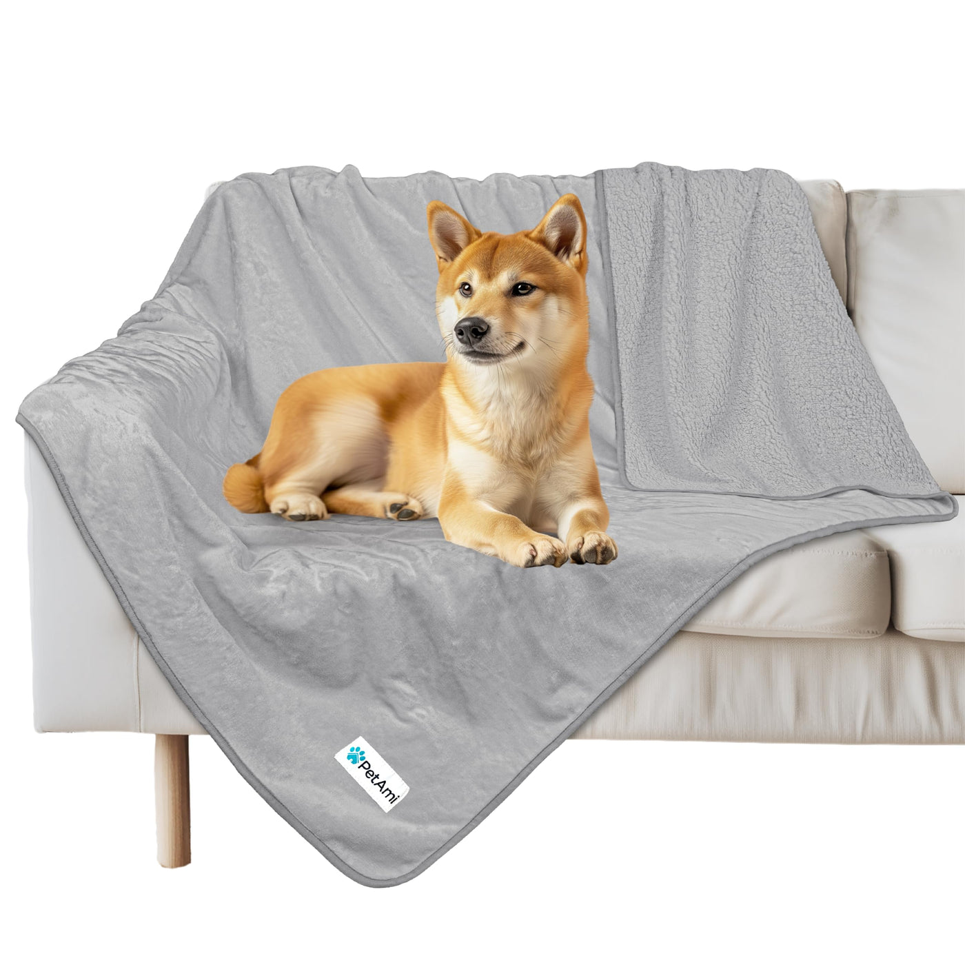 Petami Waterproof Dog Blanket For Extra Large Dogs, Pee Proof Pet Blanket For Bed Couch, Reversible Water Proof Blanket For Puppy Indoor Cat, Soft Dog Crate Cover Washable, Queen 90X90 Light Gray