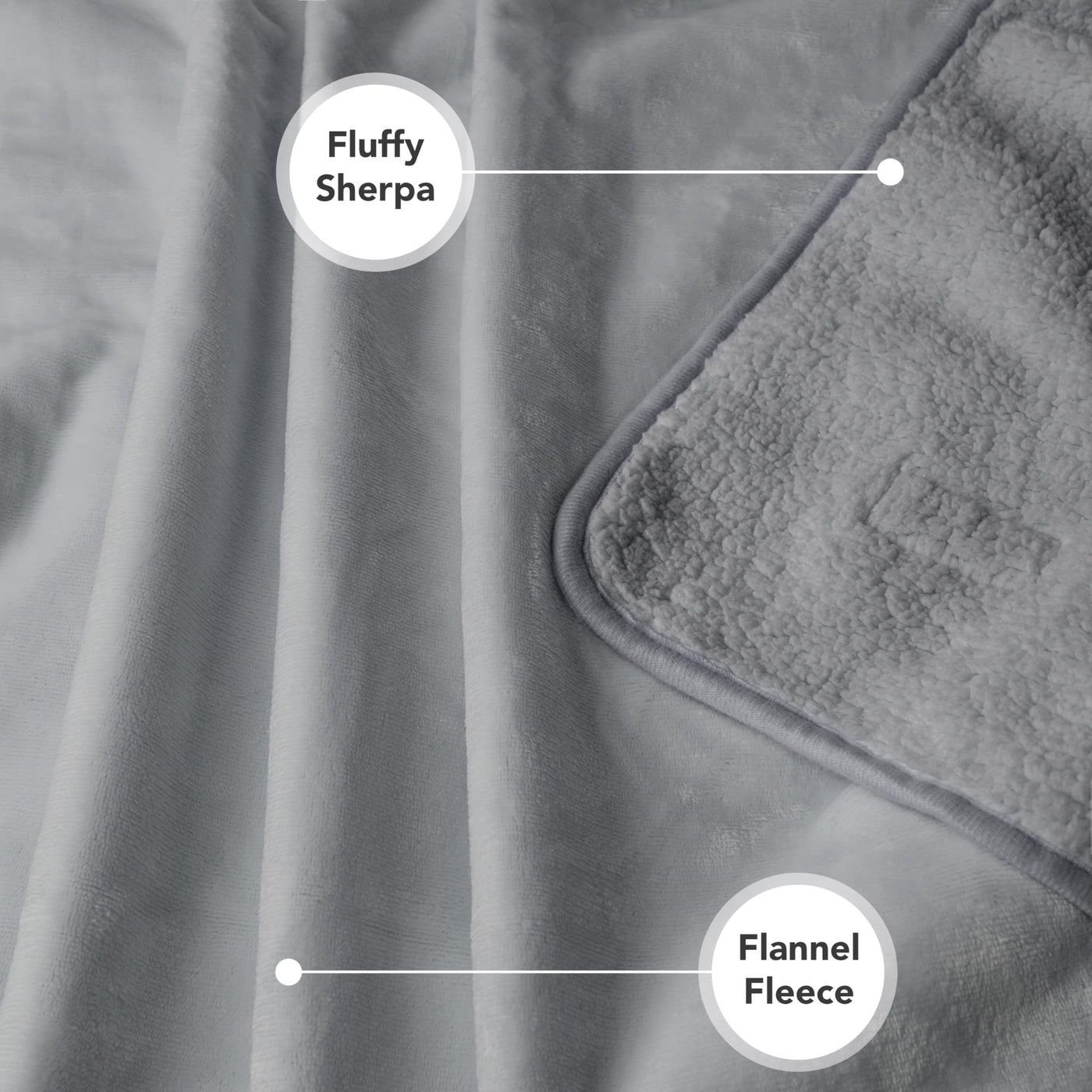 HIGH QUALITY & DURABLE - Equipped with sherpa lining and microfiber fleece, this blanket is reversible. The edge stitching design adds extra durability.