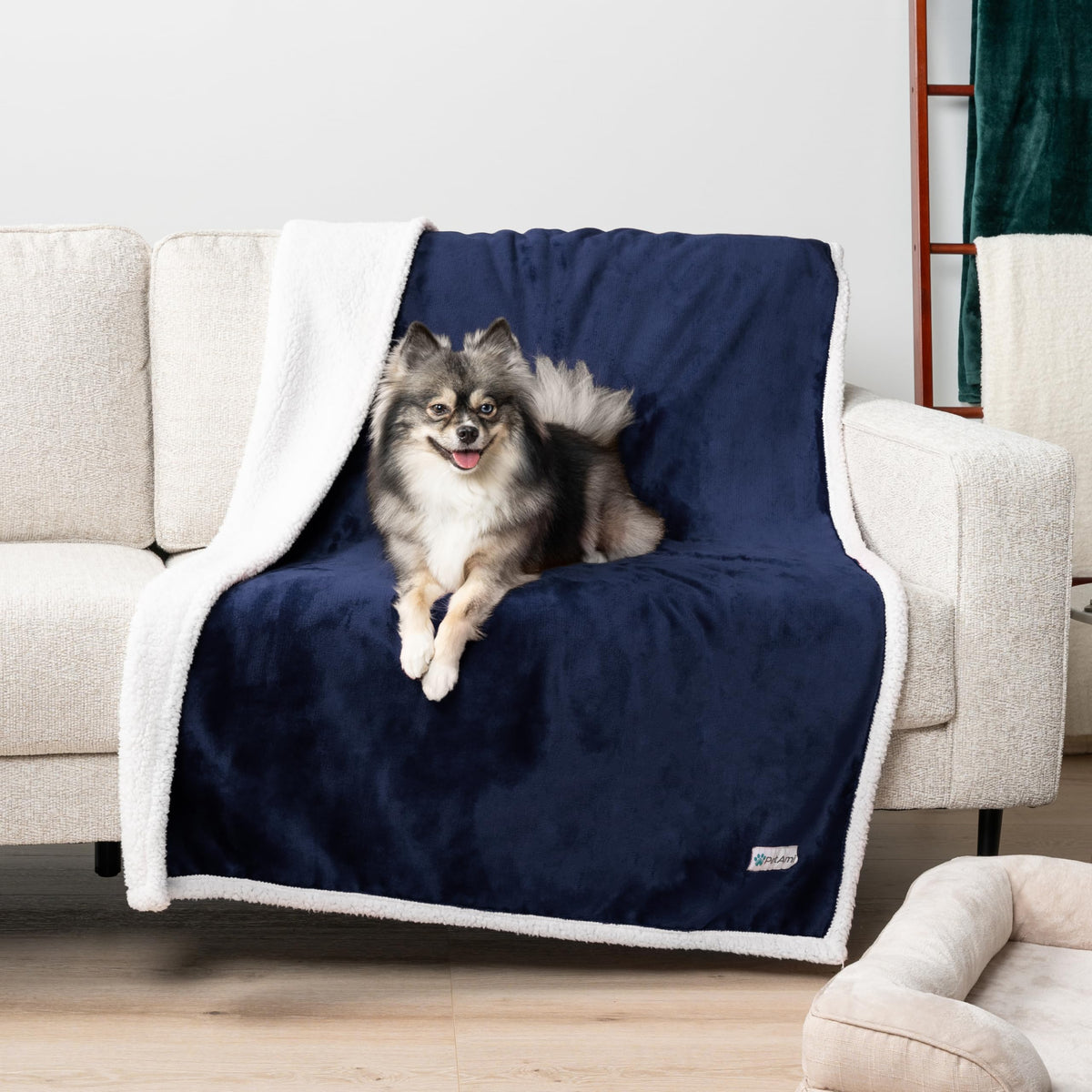 Petami Waterproof Dog Blanket For Medium Large Dog, Pet Puppy Blanket Couch Cover Protection, Sherpa Fleece Cat Blanket, Sofa Bed Furniture Protector Reversible Soft Plush Washable, 60X40 Navy Blue