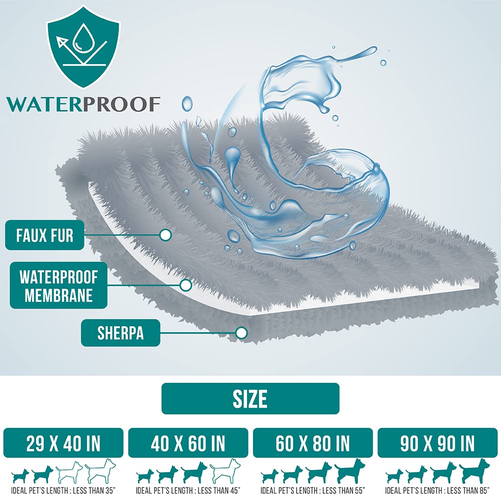 Pamper your pet with this Premium Plush Faux Fur Sherpa Pet Blanket by PetAmi. 100% WATERPROOF, this is the ideal pet blanket to help protect your home goods and furniture. This blanket is made from soft furry vegan fur, plush fabric, and cozy Sherpa lining, ensuring your best bud will get the best sleep every day.