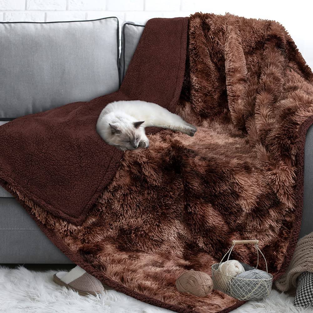 Petami Waterproof Dog Blanket For Medium Large Dog, Puppy Pet Blanket Couch Cover Protection, Sherpa Fleece Fuzzy Cat Blanket Throw, Couch Sofa Bed Furniture Protector Reversible, 40X60 Tie-Dye Brown
