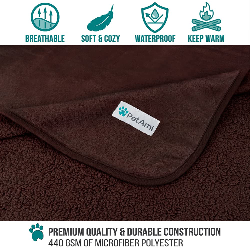 Petami Waterproof Dog Blanket For Medium Large Dogs, Pee Proof Pet Blanket For Bed Couch, Reversible Water Proof Blanket For Puppy Indoor Cat, Soft Dog Pee Crate Cover Washable, 60X80 Brown