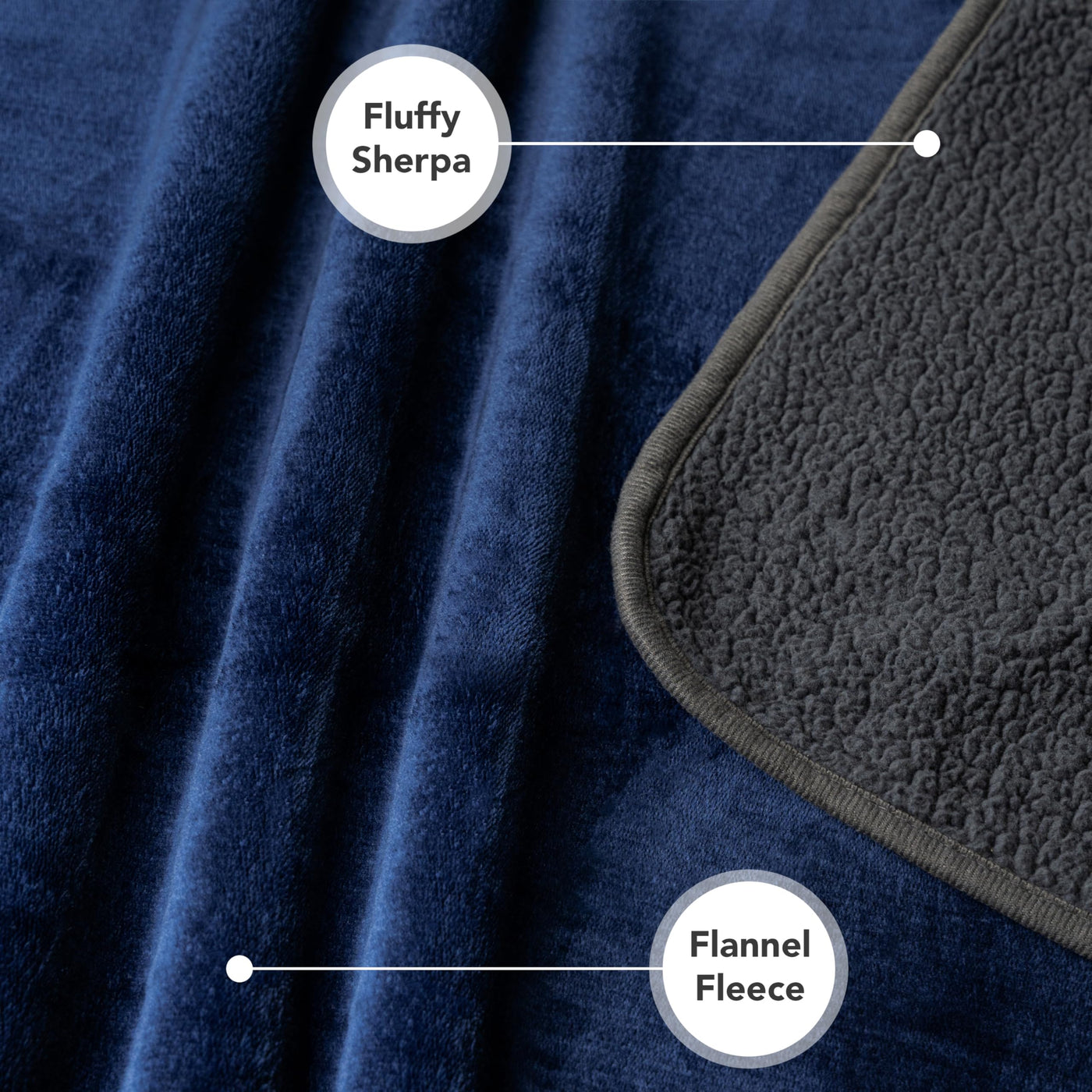 HIGH QUALITY & DURABLE - Equipped with sherpa lining and microfiber fleece, this blanket is reversible. The edge stitching design adds extra durability.