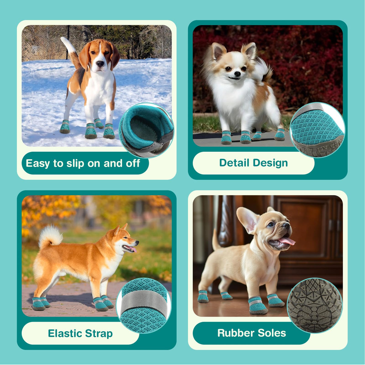 Petanims Small Dog Shoes, Breathable Puppy Boots & Paw Protectors for Winter Snow, Summer Hot Pavement, Dog Booties with Anti-Sl