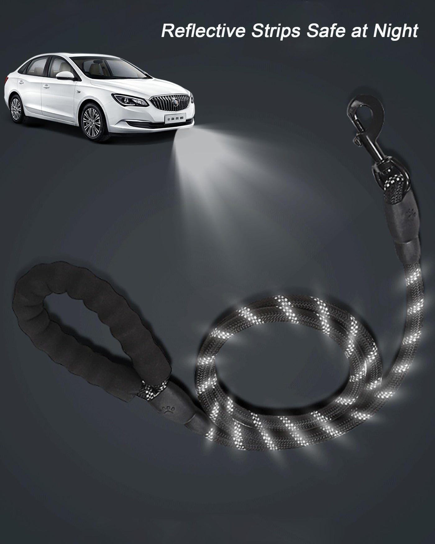 Petank Rope Dog Leash 4 Ft With Comfortable Padded Handle And Highly Reflective Threads For Small Medium Dogs (Black, 4Ft*1/2)