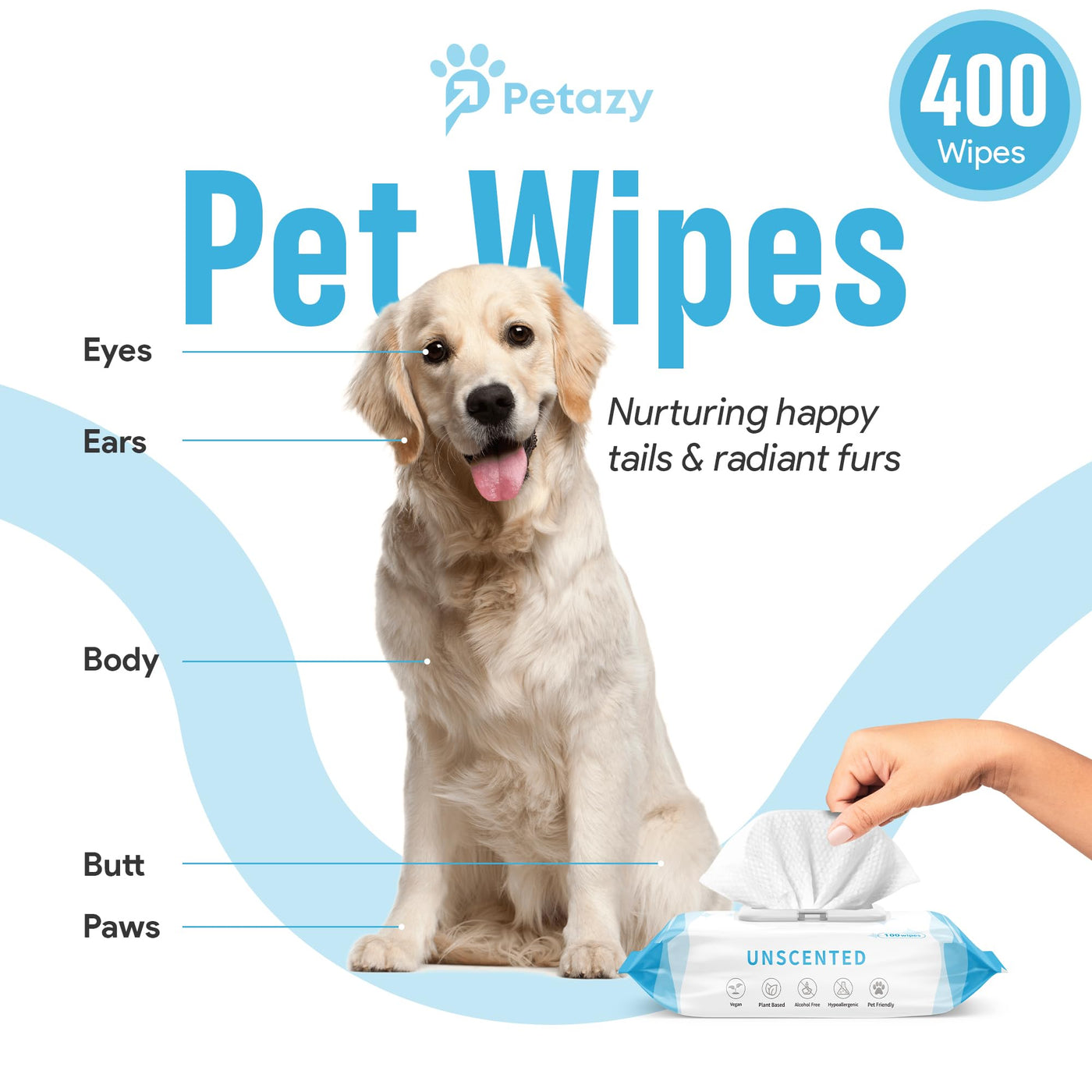 Designed By Pet Parents For Pet Parents, Petazy Pet Wipes Is What You Need To Keep Your Pet Clean. We Know What It Means To Take Your Pet To The Park, After A Meal, Or Just Daily Living. We Love Our Pets And We Want Them Clean. Our Dog Wipes Are Enriched With Natural Ingredients That Are Soothing And Refreshing. Use Them On Your Dog'S Ears, Paws, Fur, Eyes, And Bum For A Happy And Healthy Pet. The Wipes Are Unscented Yet Deodorizing. We Made Our Wipes A Big Size So Fewer Wipes Will Do The Full Cleaning Job. And We Conveniently Packed Them In 4 Packs Of 100 So You Can Keep A Pack In All The Places You May Need Them. The Flip Top Lid Makes These Wipes Great For Travel, Just Make Sure To Keep The Lid Tightly Closed And Your Wipes Will Stay Moist. We Also Included Bonus Glove Wipes For Really Messy Days. Just Slip Your Hand In And Let The Gloves Do Their Magic.