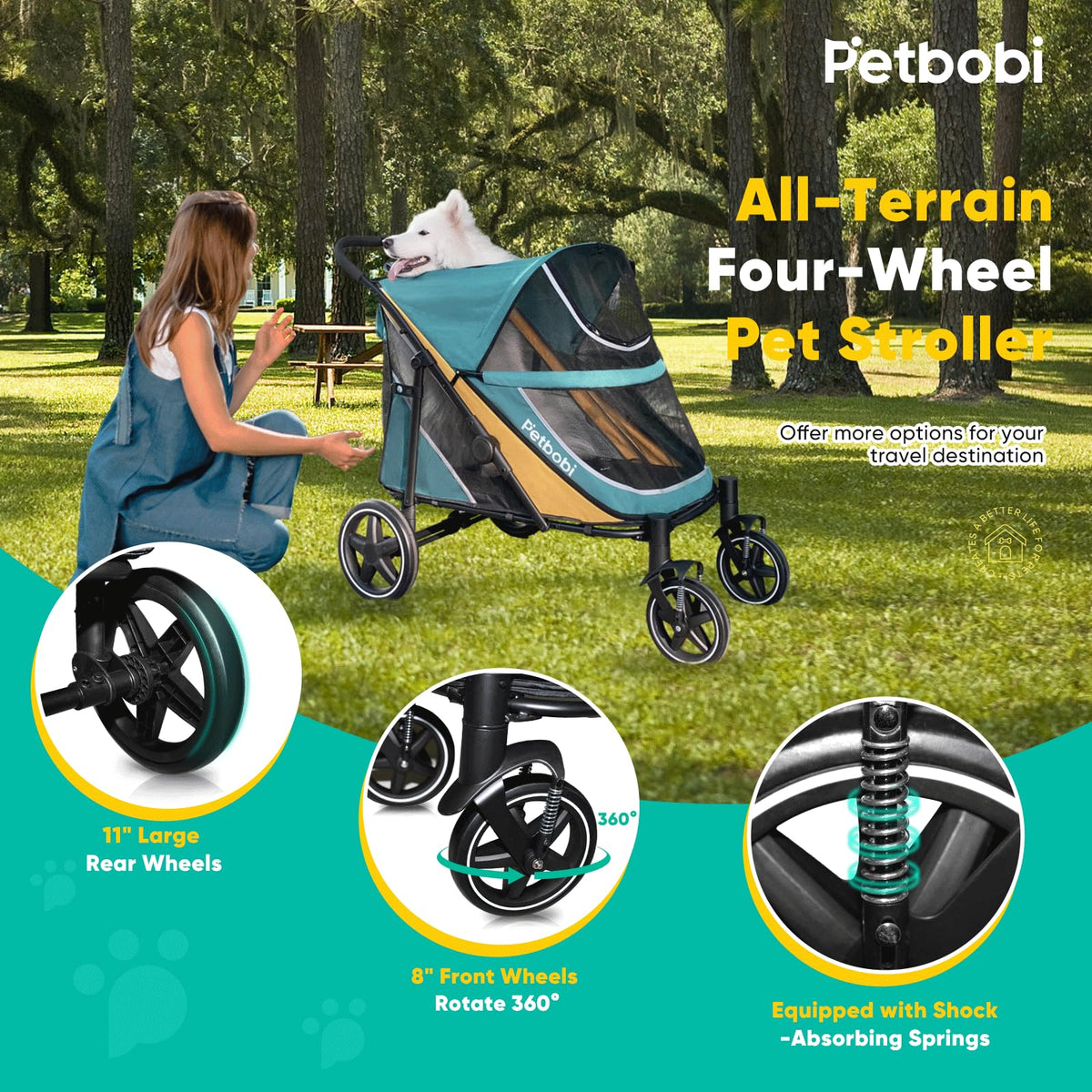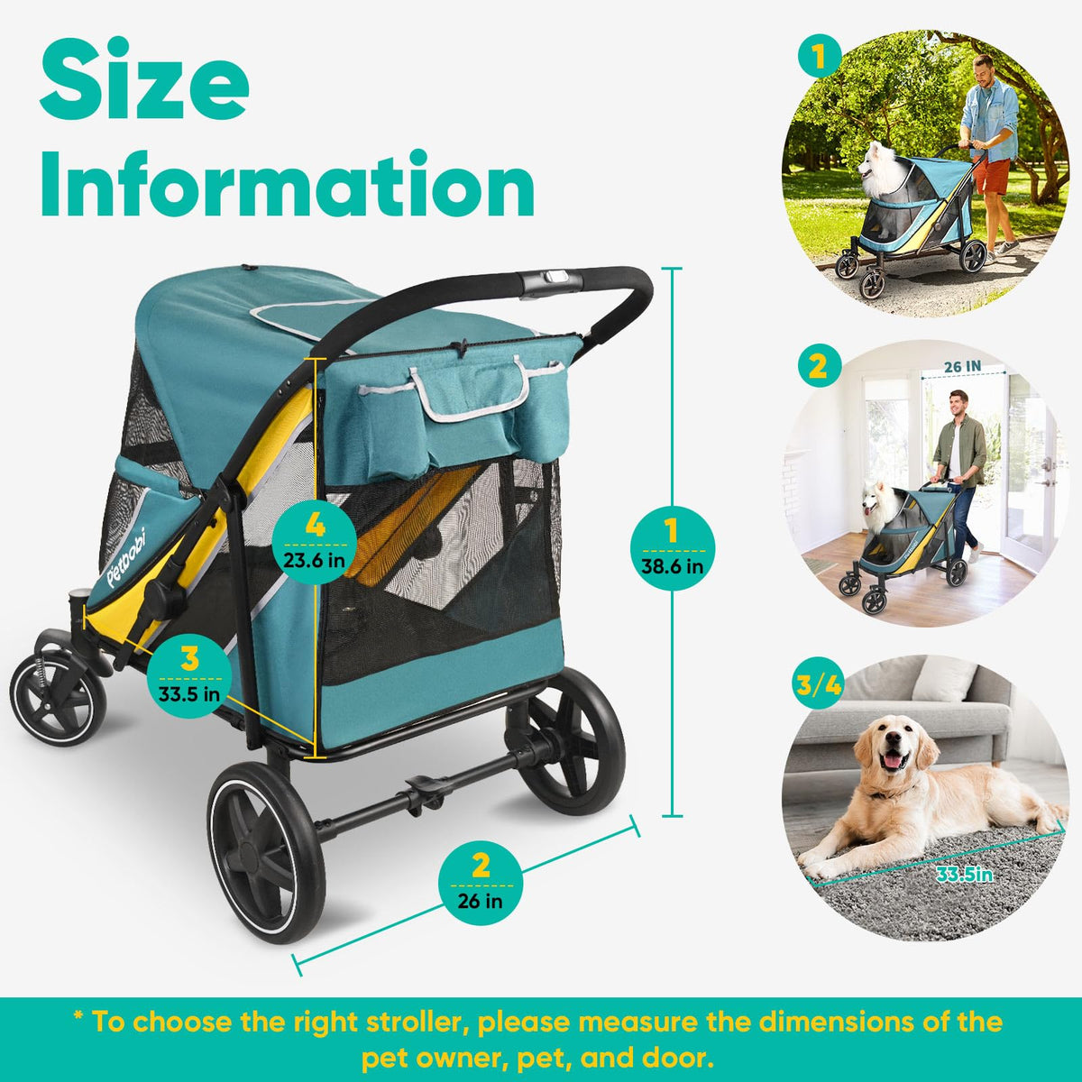 Introducing Our Premium Dog Stroller, The Perfect Companion For Your Furry Friend! Made With A Sturdy Carbon Steel Frame And Durable 600D Oxford Cloth Cover, This Pet Stroller Is Built To Last. It Features A 360 Rotating Front Wheel, Thick Iron Pipes, And Shock-Absorbing Rubber Tires, Providing A Smooth Ride On Various Terrains Such As Gravel Paths, Cement Roads, Speed Bumps, Brick Roads, Lawns, And Sandy Areas. The Rear Wheels Also Come With Brakes For Easy Stopping. Our Pet Stroller Offers Ample Space, With Interior Dimensions Measuring 34 Inches In Length, 20 Inches In Width, And 25 Inches In Height. It Can Accommodate Small, Medium, And Large Pets, Weighing Up To 80 Pounds. With Multiple Zippered Mesh Doors And Windows, As Well As An Adjustable Canopy, It Provides Excellent Ventilation, Allowing Your Pet To Enjoy A Wide Field Of View While Being Easily Monitored. Designed For Convenience, Our Pet Stroller Features A One-Click Folding Design, Making It Easy To Fold And Store In Your Car Trunk. It Also Comes With A Convenient Storage Bag Underneath The Handle, Perfect For Storing All The Necessary Pet Accessories Such As Toys, Water Bottles, And Personal Items. Cleaning Is A Breeze With The Detachable And Machine-Washable Pad. The Bottom Of The Pad Is Equipped With Magic Stickers To Prevent Slipping. Additionally, It Boasts A Stylish And Sporty Design, Complete With A Breathable Mesh Cover, Ensuring Your Pet Stays Comfortable And Cool. This Pet Stroller Makes A Fantastic Gift For Your Furry Friends. It Allows Them To Enjoy The Outdoors Without Putting Pressure On Their Joints, Providing A Better Quality Of Life. Perfect For Leisurely Strolls And Outdoor Adventures, It Offers A Comfortable And Secure Riding Experience For Pets Of All Ages And Sizes, Including Senior Pets Or Those With Joint Issues. So, Whether It'S A Sunny Day Or A Park Outing, Our Pet Stroller Is The Ideal Companion For Your Beloved Furry Friend.