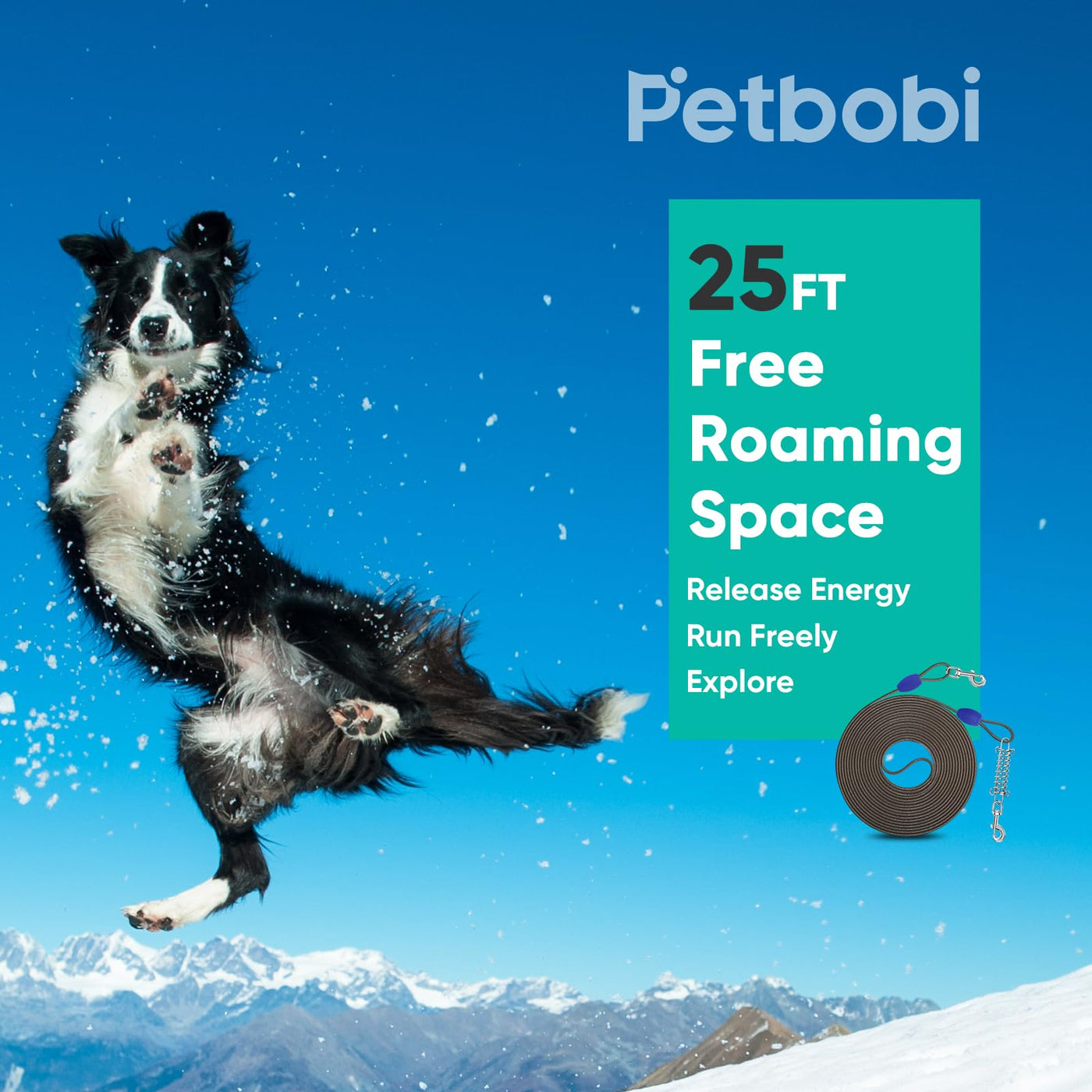 Petbobi Dog Tie-Out Cable 25Ft - Outdoor Leash 4Mm Metal Cable With Shock Absorbing Spring 360 Swivel Clips, Chain For Dogs Yard