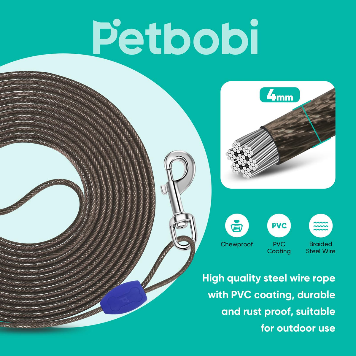 Petbobi Tie Out Cable Is Made Of Durable Steel Wire With Double Metal Hooks. It Helps You To Take Your Dog Easily And It'S Also Easy To Wear And Remove. Tie-Out Cable Allow You To Enjoy Your Dog Companion In An Open Outdoor Setting - Hands-Free. It Can Be Used Almost Anywhere, Whether It'S Hanging Out At A Campsite, Picnicking In A Park, Or Doing Yard Work In An Unobstructed Place. Specifications: Color: Black Material: Pvc, Stainless Steel Cable Length: 30 Ft Suitable For: Pets Up To 120 Lbs Package Included: 1 X Dog Tie-Out Cable 30 Ft