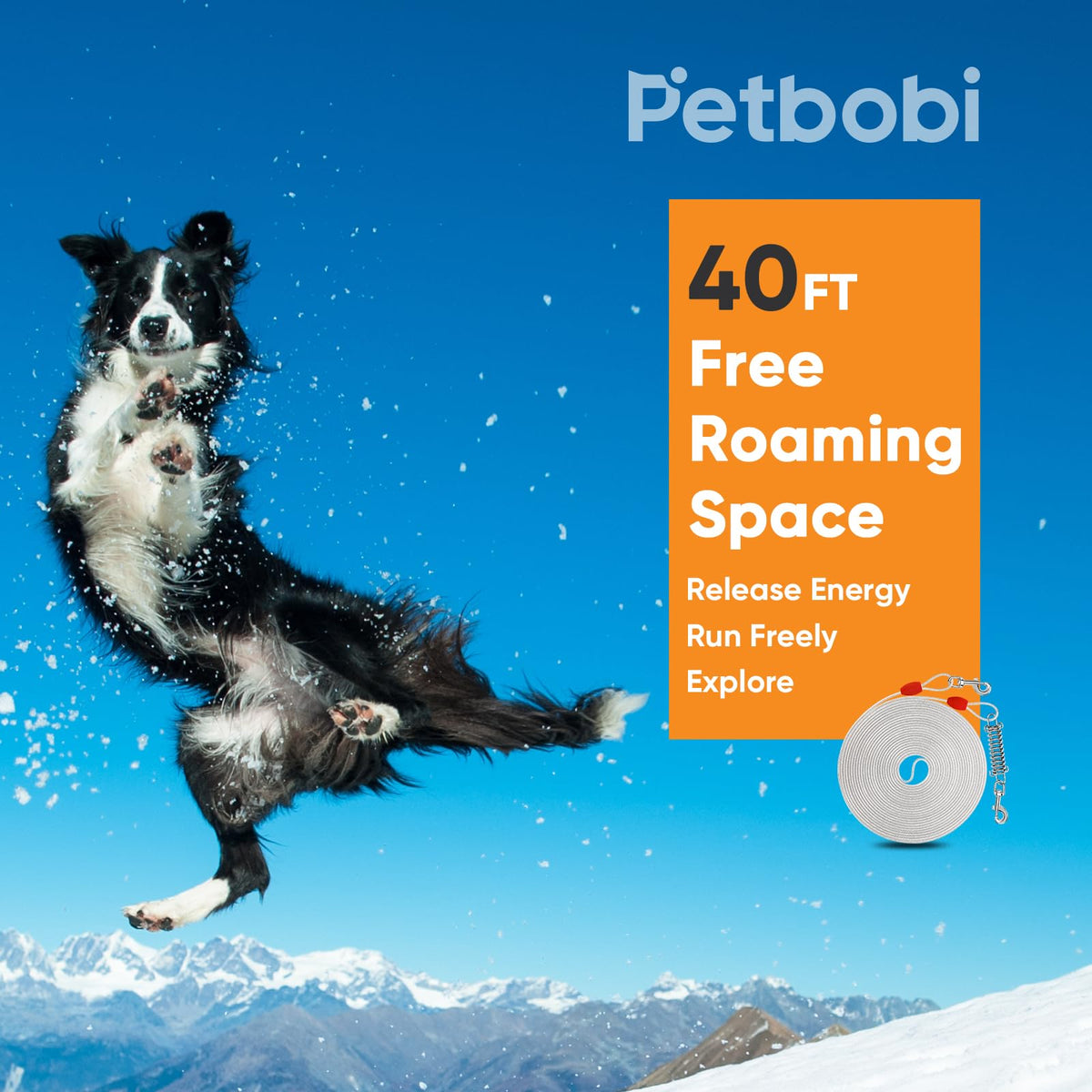 Petbobi Dog Tie-Out Cable 40Ft - Outdoor Leash 4Mm Metal Cable With Shock Absorbing Spring 360 Swivel Clips, Chain For Dogs Yard