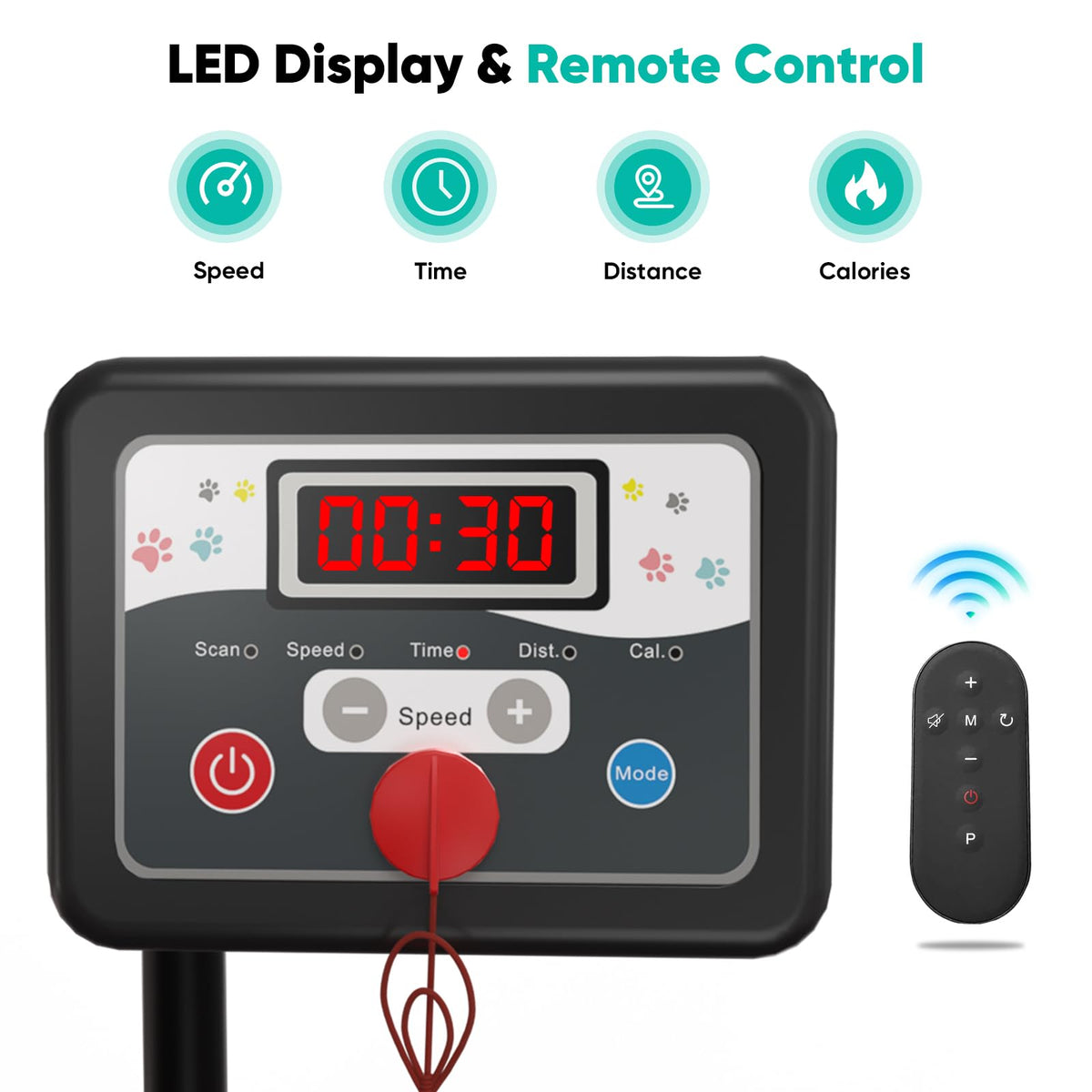 Petbobi Dog Treadmill for Medium to Large Dogs - 2-in-1 Fitness Solution Designed for medium to large dogs (265lbs weight capacity), the Petbobi Dog Treadmill combines safety, convenience, and versatility for both pets and owners. The 360 rotatable display lets you monitor speed, time, and distance from any angle, while the remote control enables hands-free adjustments-perfect for busy households. Side panels and a safety key ensure your fur baby stays secure during workouts, even if you step away to handle chores. Portability is key: move wheels allow easy repositioning, and the foldable design (with removable panels) stores neatly under furniture to save space. The low-noise motor and remote mute button prevent startling your dog or disrupting family activities, catering to their sensitive hearing. Powered by a 1.5 HP motor (0.5-4.0mph speed range), this treadmill features a 36.22x14.17 running belt-ideal for active breeds. Remove the panels to transform it into a compact treadmill for quick human workouts, maximizing utility in half the space. Backed by a 12-month warranty and 24/7 customer support, Petbobi ensures a worry-free experience. Whether youre keeping your dog fit or squeezing in your own exercise, this 2-in-1 solution delivers convenience, safety, and dual functionality for modern pet owners.