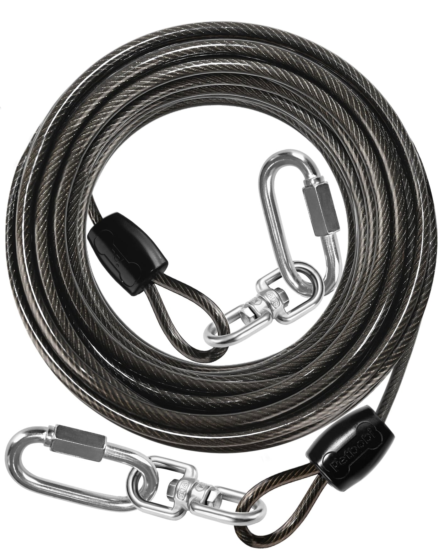 Petbobi Extra Strong Dog Tie Out Cable Provides Joyful And Reliable Outdoor Adventures For You And Your Furry Friend. Features: Thanks To The Upgraded Metal Ring Reinforcement, This Heavy Duty Dog Cable Can Stand Stronger Pulling Force And Larger Dog Up To 300 Lbs. The Special Designed Loopguard Can Spread The Pulling Force Evenly Throughout The Loop To Stop Breakage. When It Comes To Dogs, There Is No Such Thing As ''One Size Fits All''! Petbobi Tie Out Cable Is Available In Various Sizes: 10/20/30/40/50Ft The Practical Gift For Your Dog Or Friends Who Have Large Dogs.Specifics: Length Of The Cable: 50Ftcolor: Black Outside Diameter: 6Mm Material: Steel + Pvc + Silicone Suggested Dog Weight: Up To 300 Lbs Package Included: 1X50Ft Dog Cable