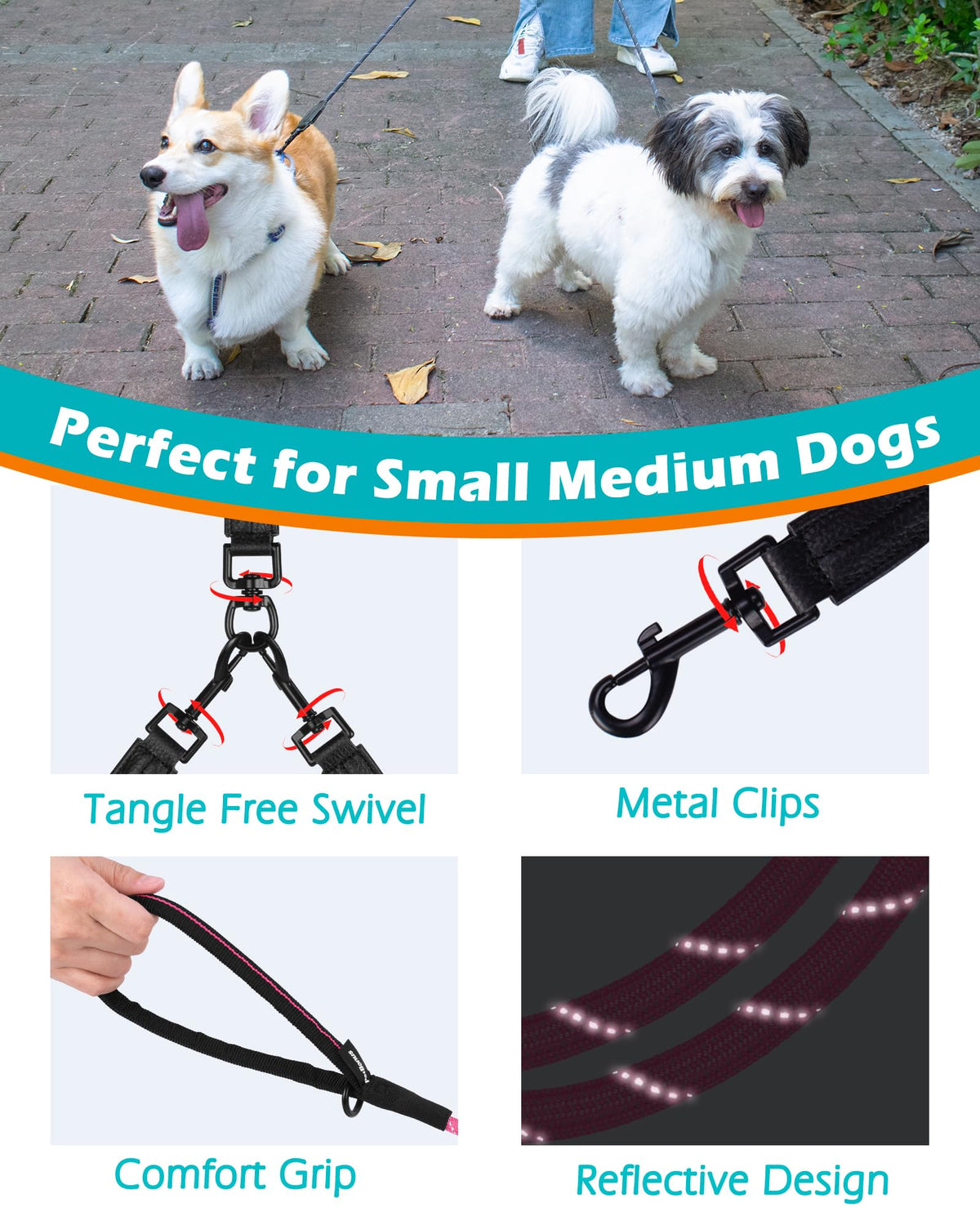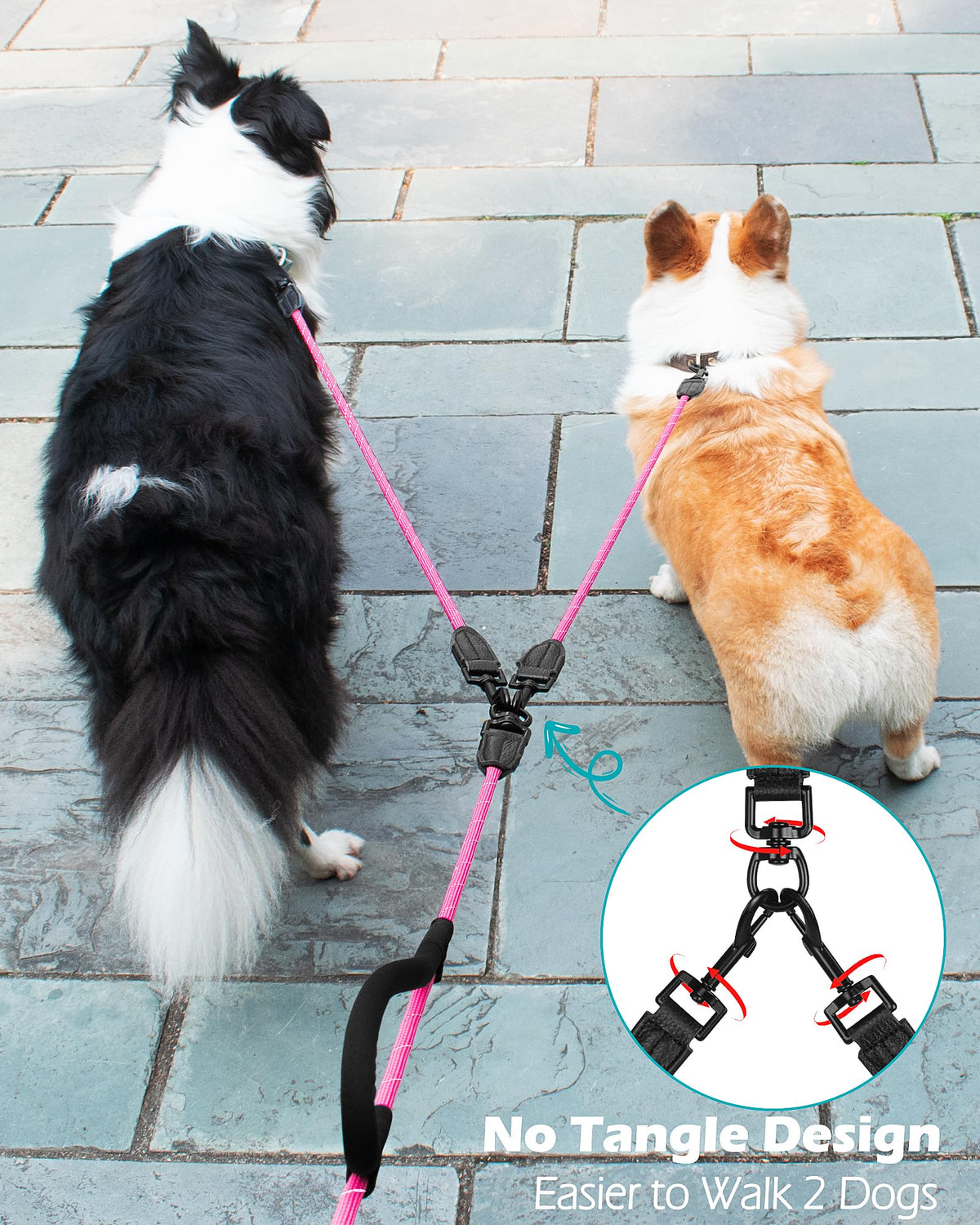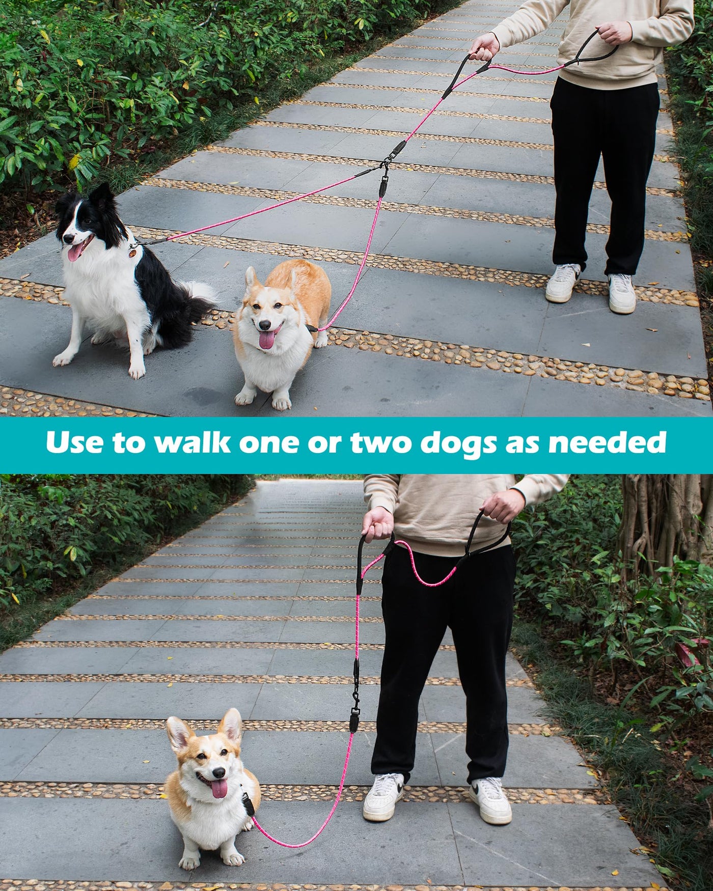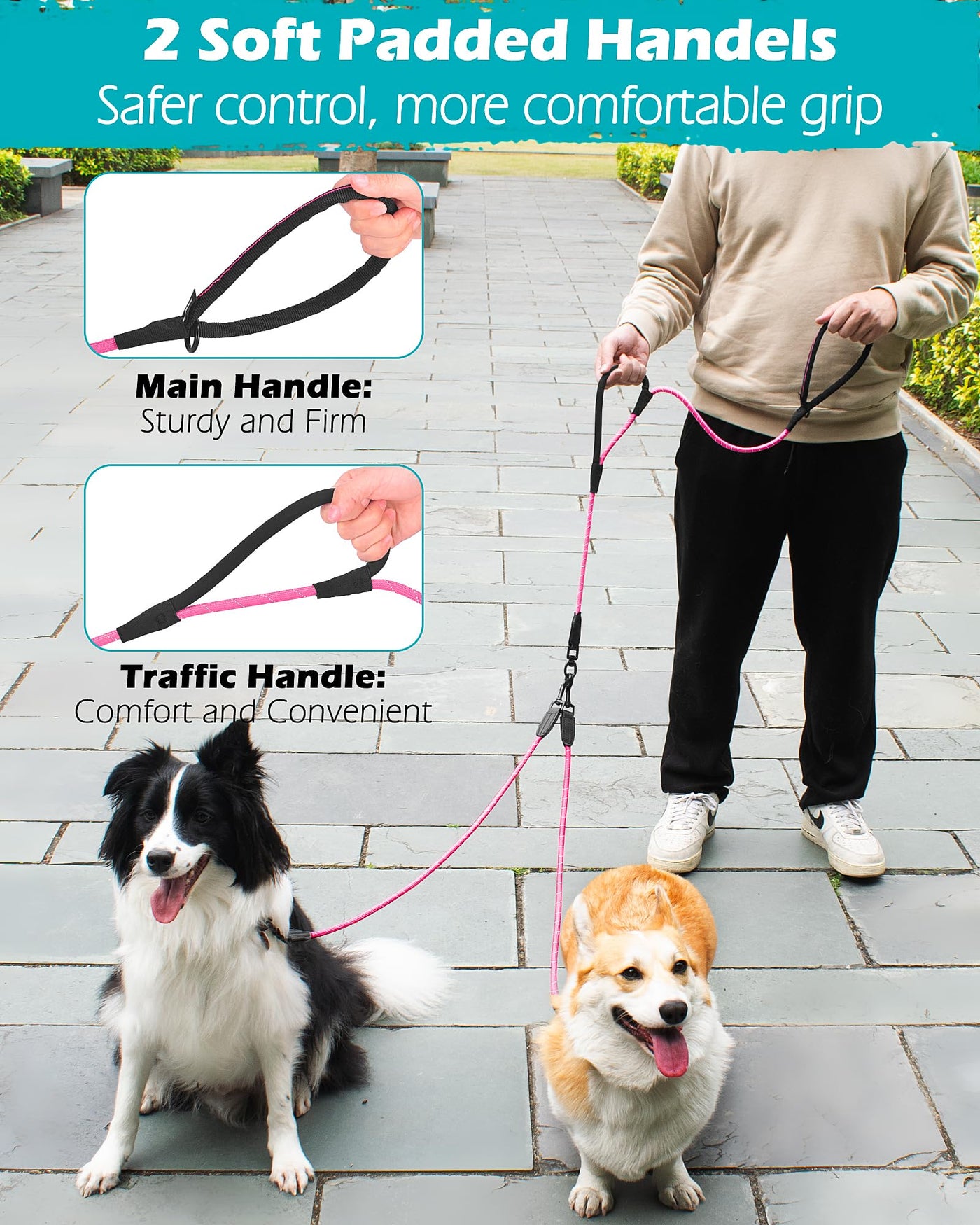 Petbonus Rope Double Dog Leash, No Tangle Dual Dog Leash, Reflective Walking Training Lead With Two Comfortable Padded Handles,