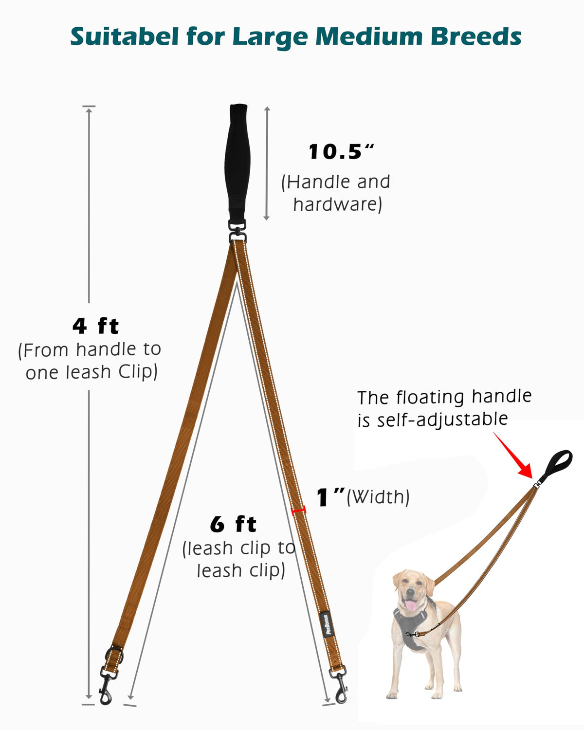 Petbonus Two Point Control Dog Leash, Works With No Pull Harnesses, No Tangle Dog Training Leashes, No Pull Padded And Reflective Walking Lead, Converts To Single Leash For Medium Large Dogs If You Have An Energetic Dog That Is Easily Excited And Pulls Wildly And Even Causes Suffocation, A Walk Will Be A Nightmare. The 2 Point Dog Leash Will Help You Gain More Control In A Gentle Way, Train It To Walk Next To You And Teach It Proper Leash Etiquette. Double Clip Dog Leash For More Control And Less Pulling Converts To A 4 Ft Single Leash When No Additional Control Is Required Movable Ergonomic Handle Ergonomically Designed Soft Padded Handles Provide A More Comfortable Grip That Won'T Hurt Your Hands Durable Double Point Clasp Double Clip For Better Control Of The Dog From The Chest And Back To Avoid Choking The Dog Tangle Free Swivel Clasp It Moves On A Leash To Accommodate Movement, Making It Easy For The Dog To Turn Towards You After Pulling Reflective Design Reflective Stitching Improves Visibility At Night And Ensure You And Your Dogs' Safety At Night Walking Suitabel For Large Breeds The Floating Handle Is Self-Adjustable, And The Length Of The Leash Depends On The Dog'S Movements And Your Position When No More Control Is Needed, It Can Be Converted To A Standard Dog Leash Of 4Ft