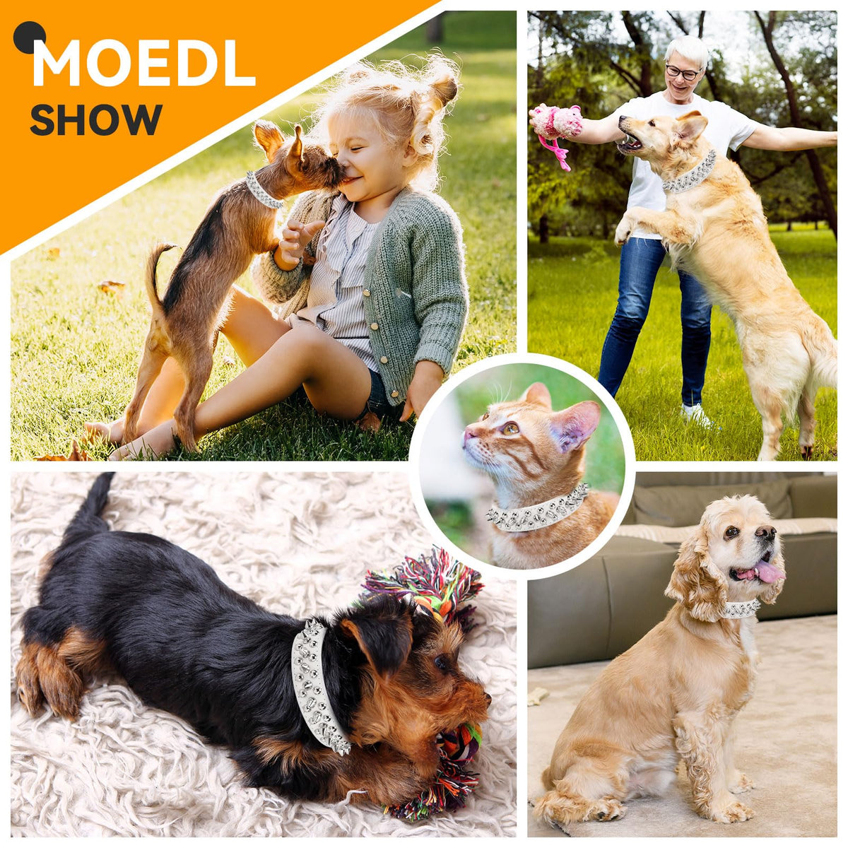 PETCARE Spiked dog collar for small medium large dogs cats eg chihuahua pug pit bull doberman poodle frenchies bulldog husky yorkie. Soft adjustable PU leather dog collar