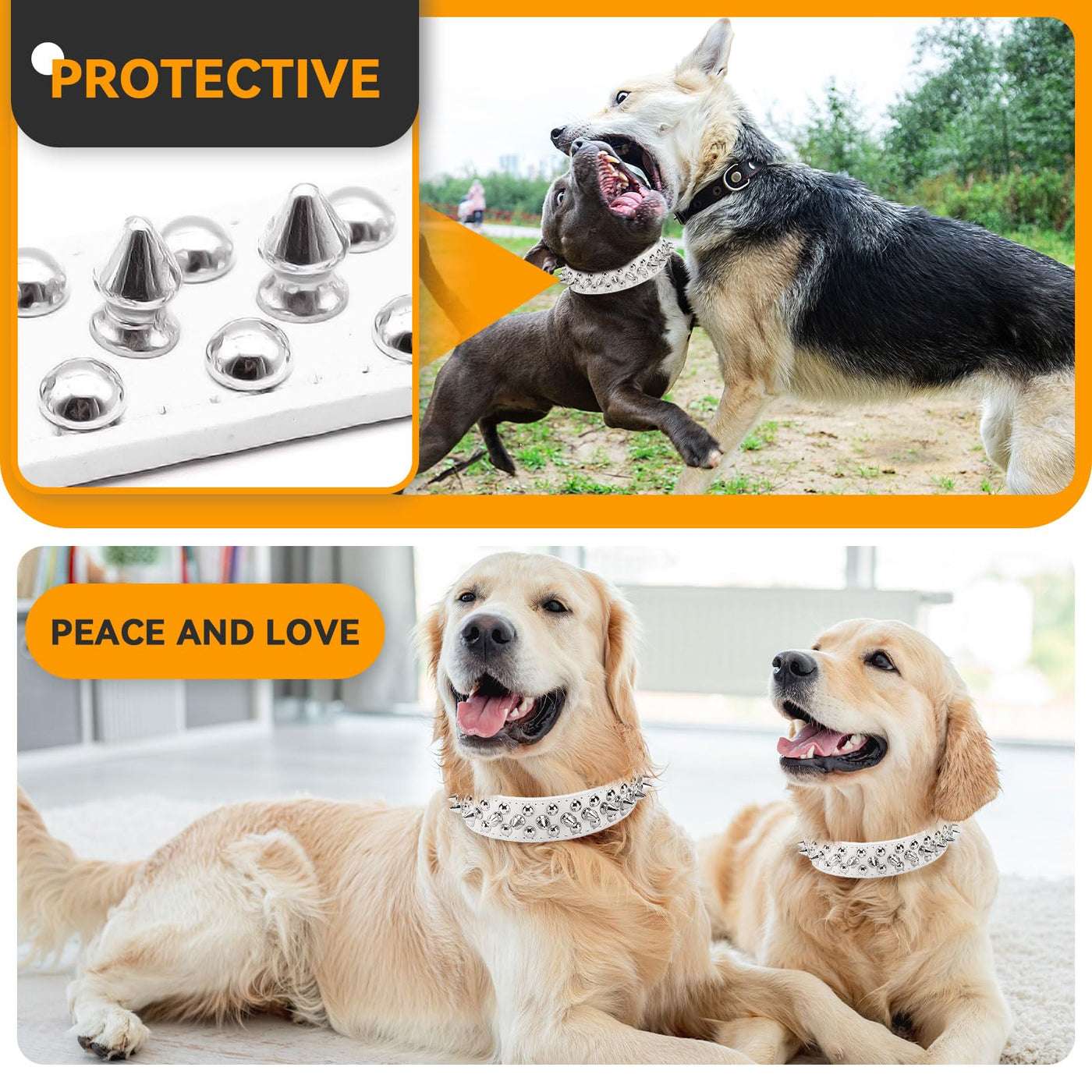 Petcare Spiked Dog Collar White Soft Pu Leather Funny Mushrooms Rivet Spike Studded Puppy Collar Adjustable Outdoor Pet Dog Coll