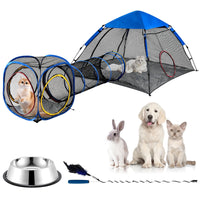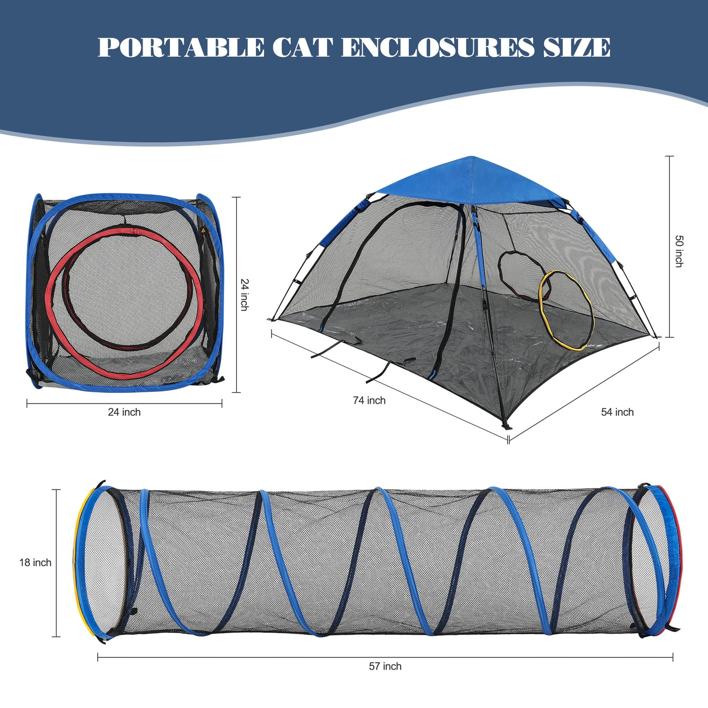 Outdoor Cat Enclosure - Cat Tent, Pop Up Cat Play Tunnel, Cube Combo With Feather Teaser Toy And Stainless Steel Water Bowl For Cats, Kittens, Dogs And Small Animals