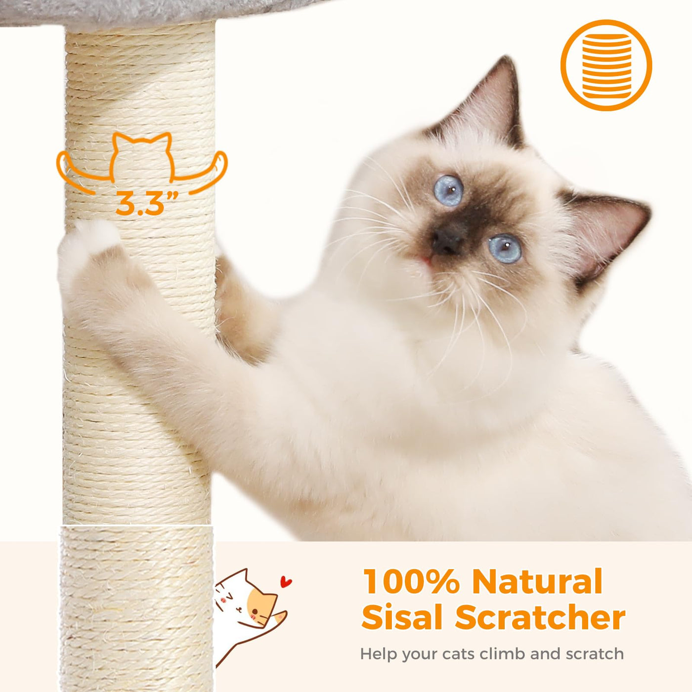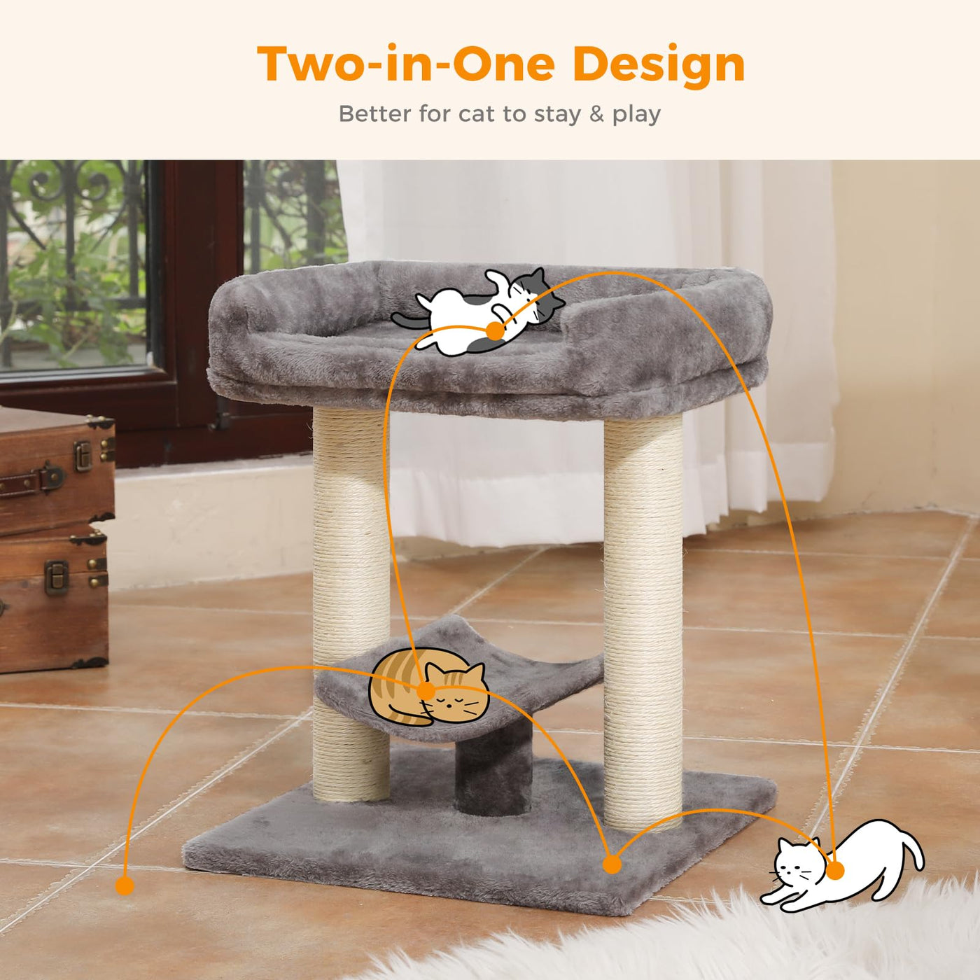 Petepela 19'' Scratching Post, Cat Tree Tower, 100% Natural Sisal Scratcher With Large Plush Top Perch Bed, Cozy Platform For Ki