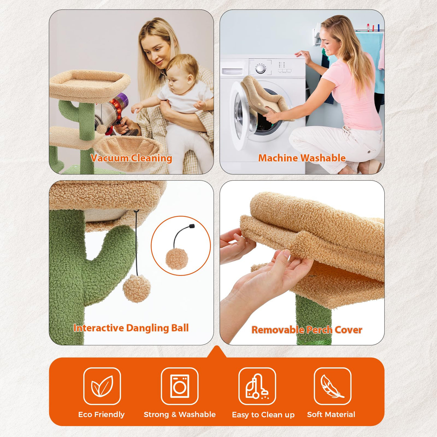 The Petepela 31.5'' Small Cat Tree Is The Ultimate All-In-One Play And Rest Area For Your Feline Friend. This Compact And Stylish Cat Tree Features A Cactus Cat Tower, Sisal Scratching Ramp, Cozy Hammock, And Cat Condo With Top Perch. The Sisal Scratching Ramp Satisfies Your Cat'S Natural Scratching Instincts, While The Cozy Hammock And Cat Condo Provide Comfortable Spaces For Your Cat To Rest And Relax. The Top Perch Offers A Great Vantage Point For Your Cat To Observe Their Surroundings. With Its Compact Design And Stylish Cactus Motif, This Cat Tree Fits Seamlessly Into Any Home Decor. Give Your Cat The Play And Rest Area They Deserve With The Petepela 31.5'' Small Cat Tree.