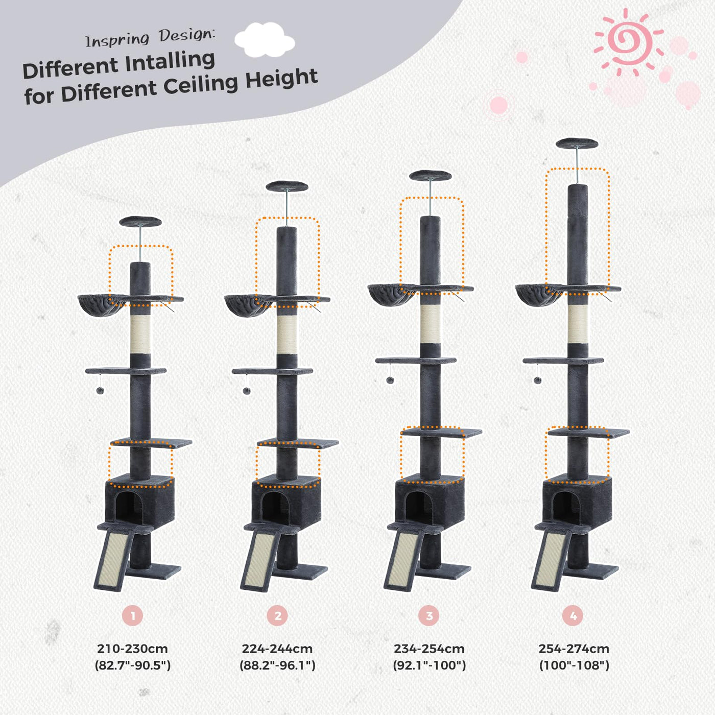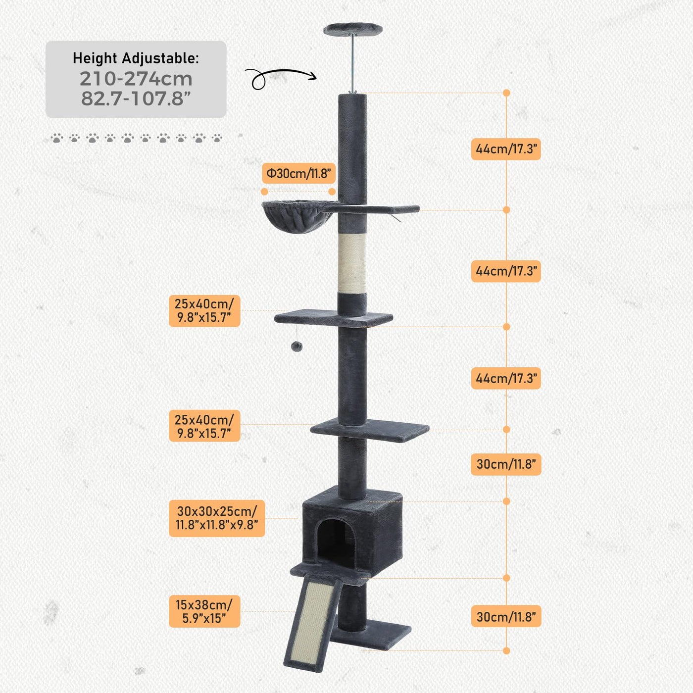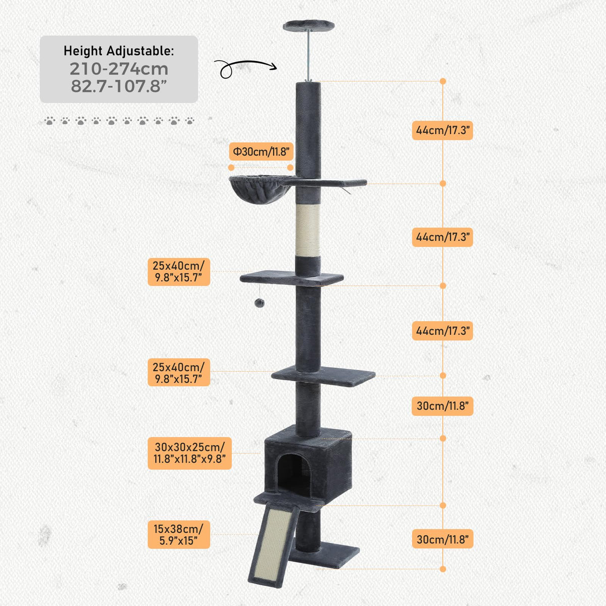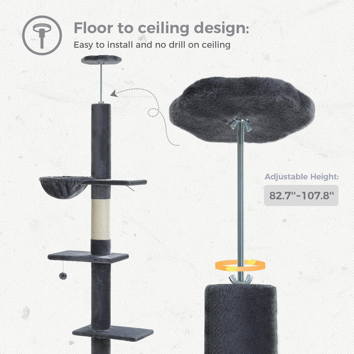 Petepela Floor To Ceiling Cat Tree, Cat Tower 5 Tiers Tall (83-108 Inches) Adjustable Height, Cat Climbing Tree Featuring With C