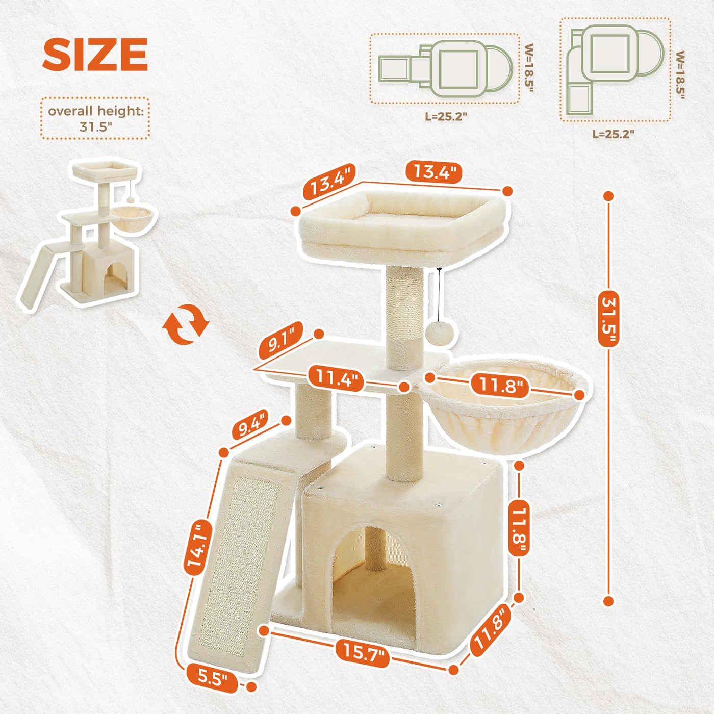 Petepela Small Cat Tree For Indoor Cats, 32'' Cute Cat Tower Cat Condo With Sisal Scratching Ramp, Cozy Hammock And Removable To