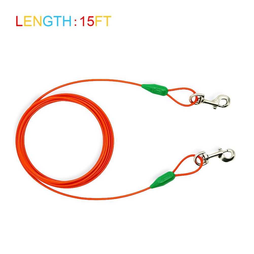 Petest 16 Inch Spiral Stake with 15ft Tie-Out Cable for Medium Dogs Up to 60 Pounds DarkGreen & Orange