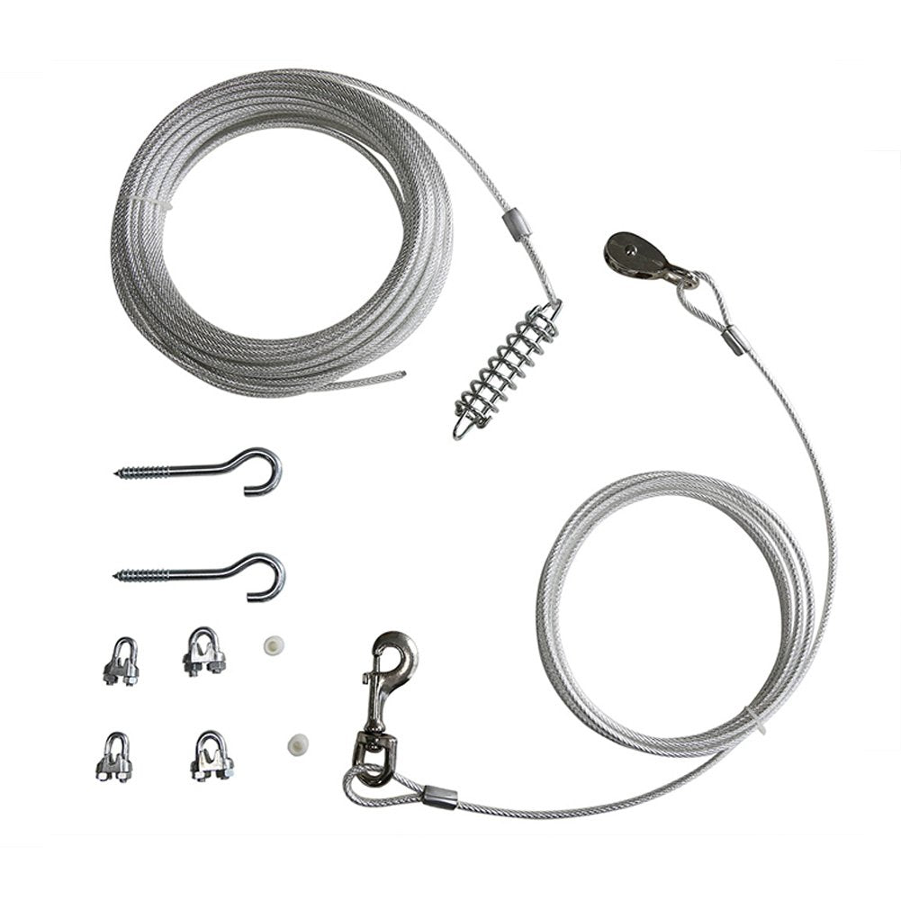 Q: Is the cable suitable for both indoor and outdoor use?A: Yes, the Petest Trolley Runner Cable is designed for outdoor use, but it can also be utilized indoors in larger spaces, ensuring your dog remains secure.