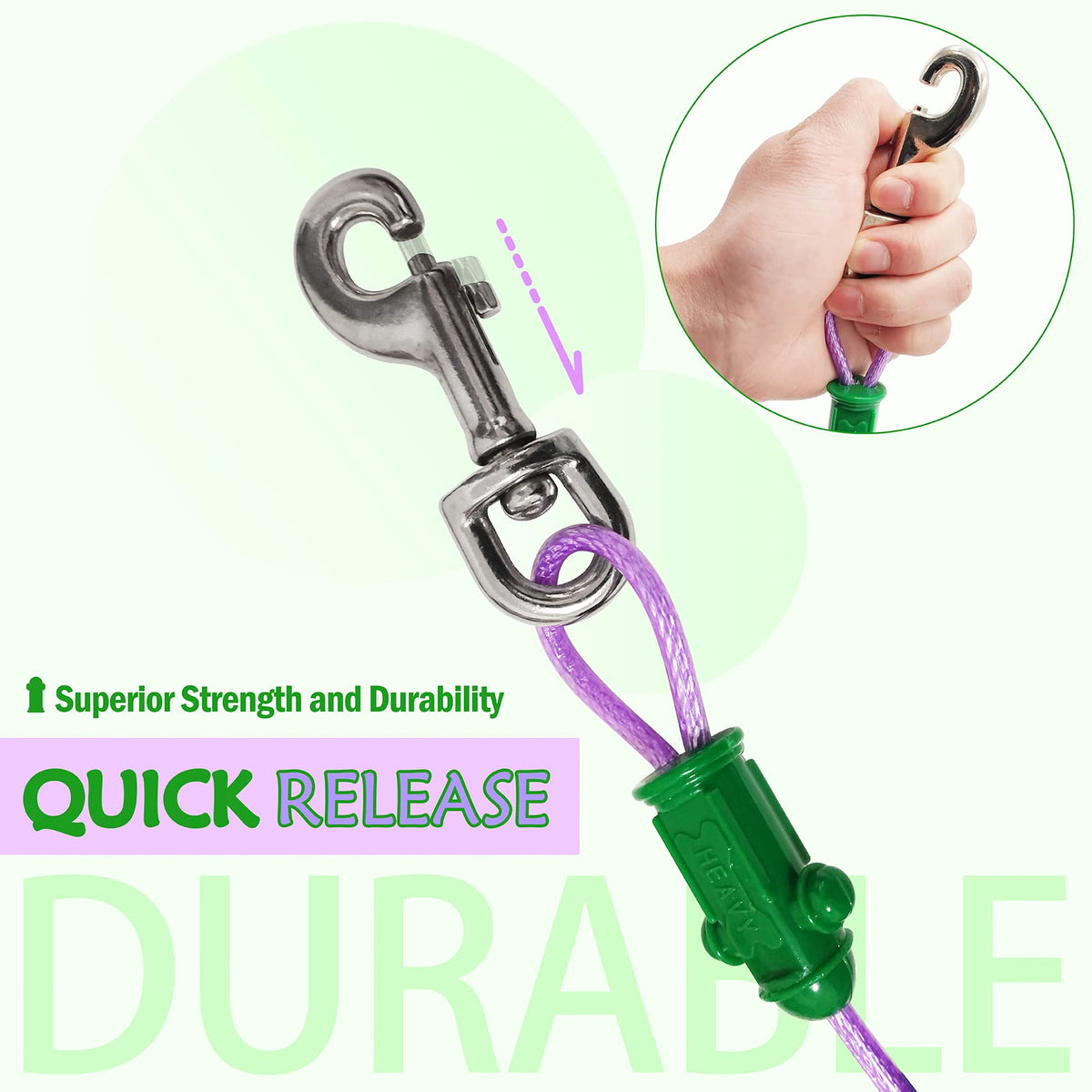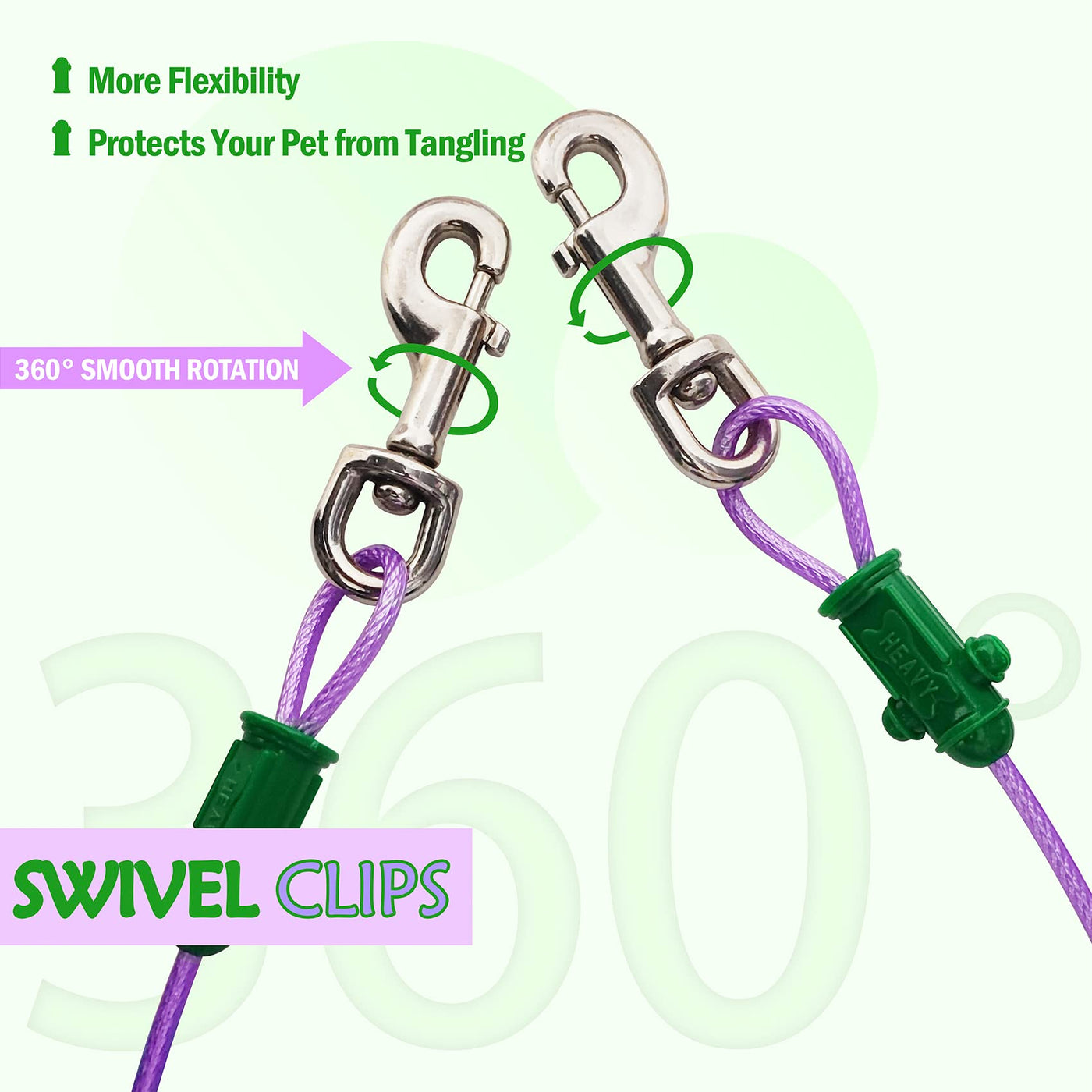 Petest Reflective Tie Out Cable with Crimp Cover for Heavy Dogs Up to 125 Pounds, 40 Feet