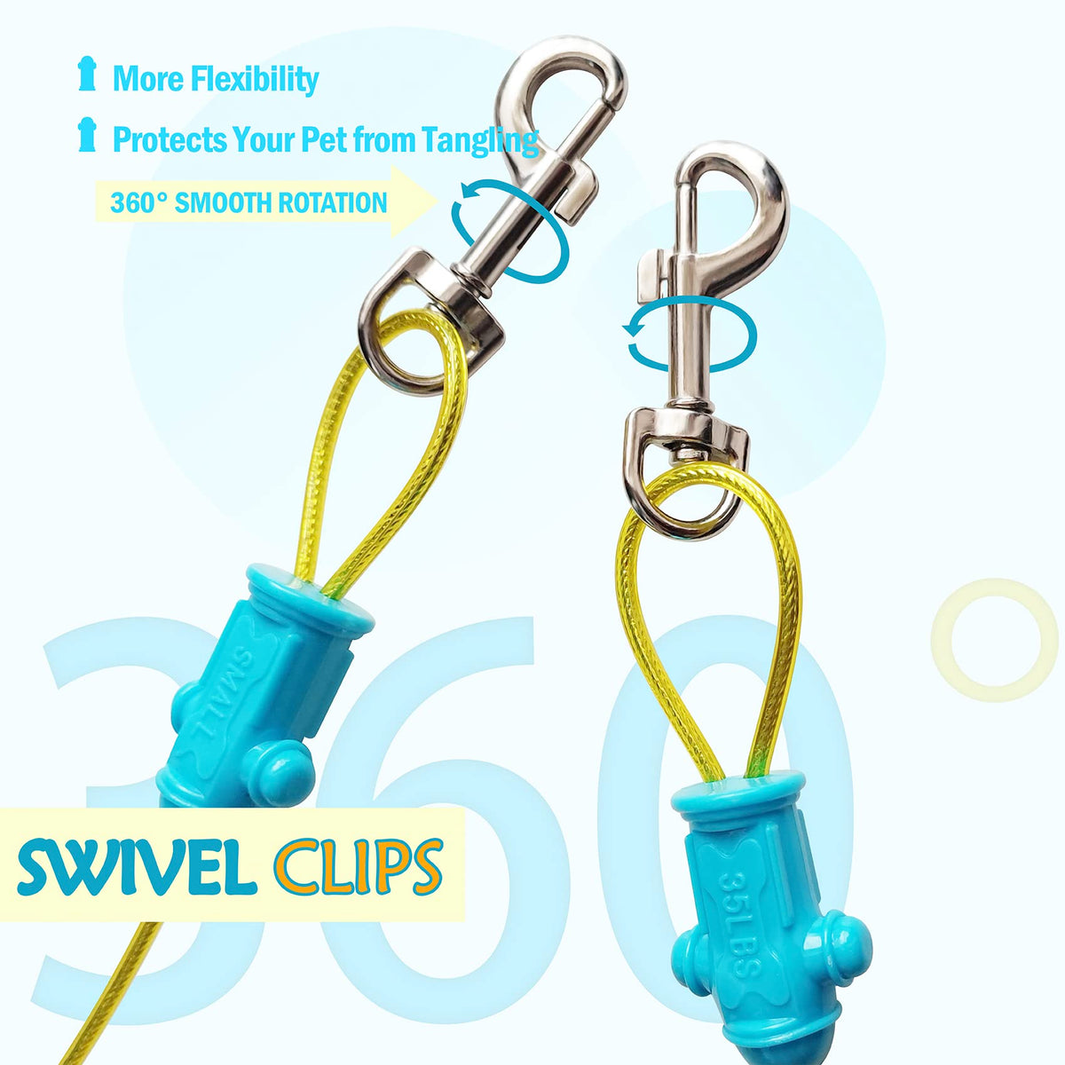 Petest Reflective Tie Out Cable with Crimp Cover for Small Dogs Up to 35 Pounds, 15 Feet