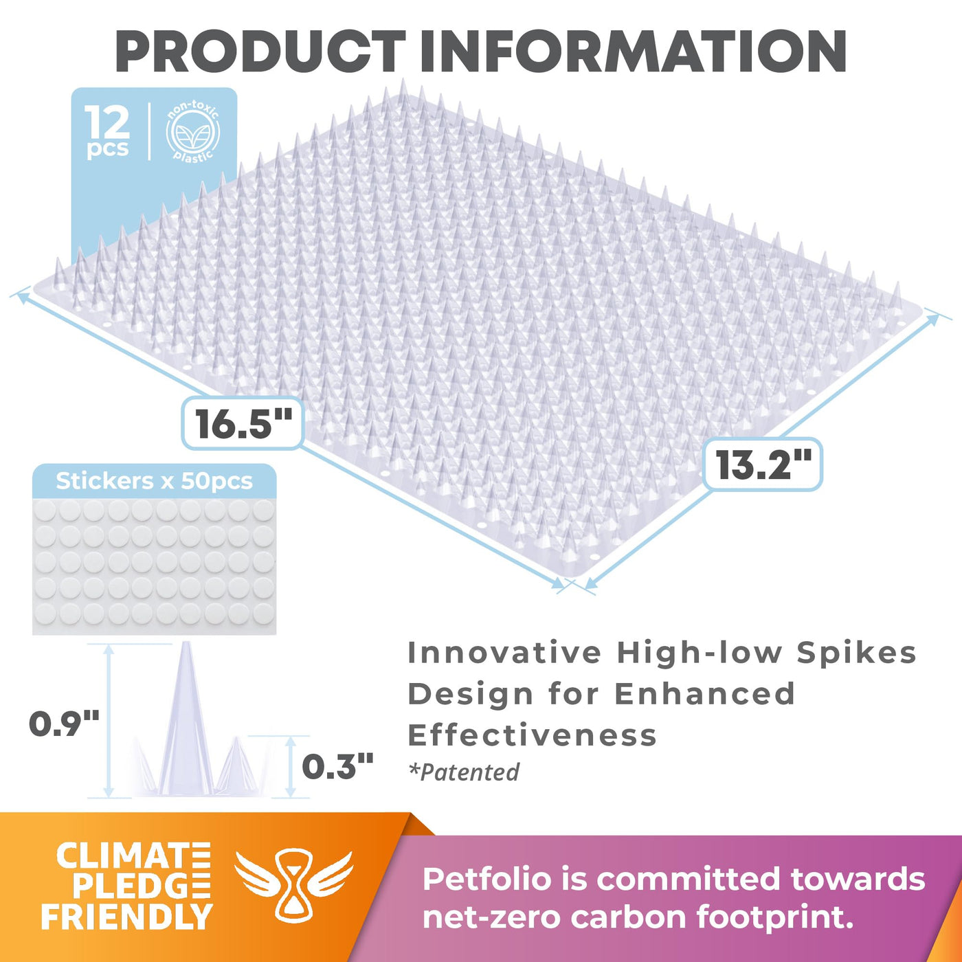 Petfolio 12 Pack Upgraded Scat Mat For Cats - 16 x 13 Inch Cat Repellent Mat With Uneven Spikes Is An Effective Pet Training Mat Device For Cat Repellent Indoor & Outdoor To Deter Cats & Other Animals