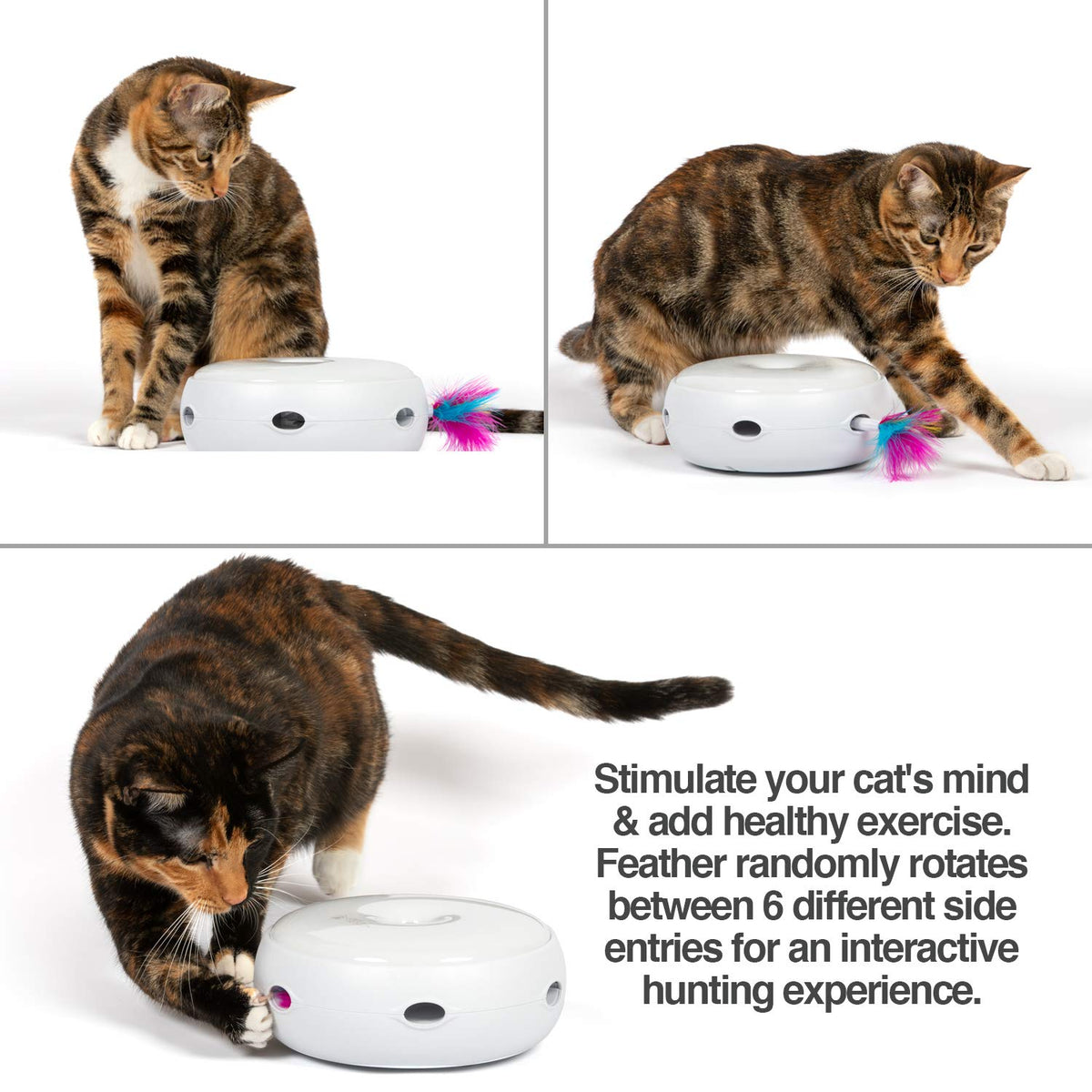 Ambush Interactive Cat Toy Is An Automatic Cat Toy Based On The Idea Of Simulating A Hunting Experience Using Moving Objects. The Interactive Cat Toy Feather Will Randomly Pop Out From 6 Holes At Different Time Intervals. With Added Color Led Lighting, Cats Are Drawn Into The Experience Of This Cat Toy To Catch The Feather. Great For Daytime Or Nighttime Hunting. Interactive Cat Toy For Both Kittens And Older Cats And The Perfect Cat Toys For Indoor Cats And Cat Gifts.