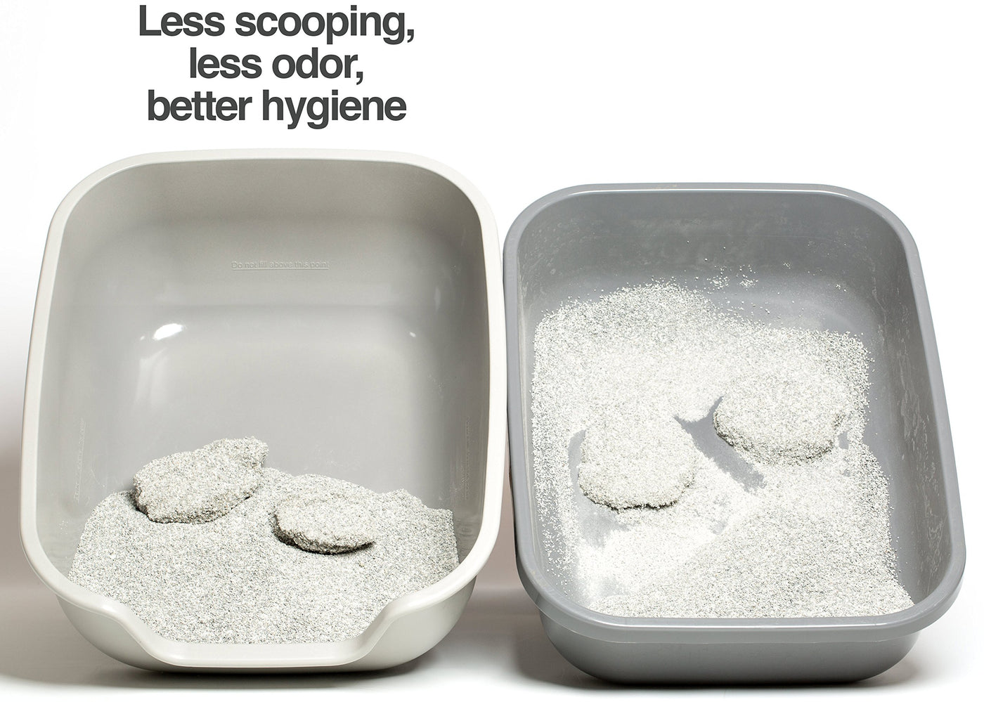 Spacious Design: Curved design for easy scooping & cleaning. Works with clumping pellet lightweight & crystal litters. Easy-grip lip for all cat sizes