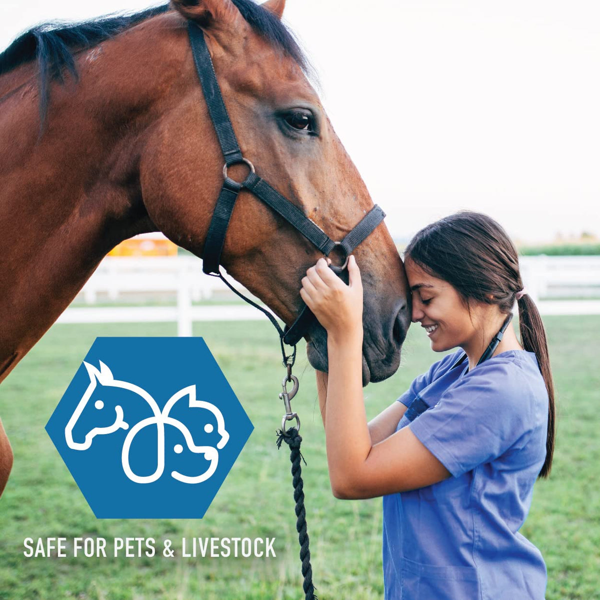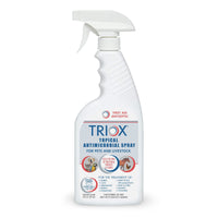 Our pets and livestock depend on us to keep them safe, healthy, and happy. We do our best to keep them out of harm's way, but when those accidents, illnesses, and other unplanned events occur, it's wise to have an item in your first-aid kit that is safe, fast, and effective. Topical antimicrobial spray is for the treatment of various wounds that your pet or livestock might suffer with. Many different sprays are available, and it can be troublesome to know which one is right for you and your pet. Our engineers at Ecoclear have done the research for you and developed TrioX: a topical antimicrobial spray safe for wounds on all pets and livestock, from dogs to horses and even reptiles. When your pet or livestock gets an injury, you dont want to use just any product. Youll want to use a product that you know delivers the best results consistently. TrioX delivers superior antimicrobial performance and kills 99.9999% of germs in under 30 seconds. With TrioX, you can rest easy knowing that wounds are effectively treated and toxins neutralized. Another key feature that sets TrioX apart is that it has no shelf life. Gone are the days that a product goes bad before you can even use it. With TrioX, the expiration date does not begin until you mix the solution with water. Having no shelf life guarantees that you will always have a top-performing product, unlike other brand antimicrobial sprays that may have sat on a shelf for months, reducing their effectiveness and wasting your money. TrioX is a one-step treatment for a wide variety of ailments that will help prevent further infection.