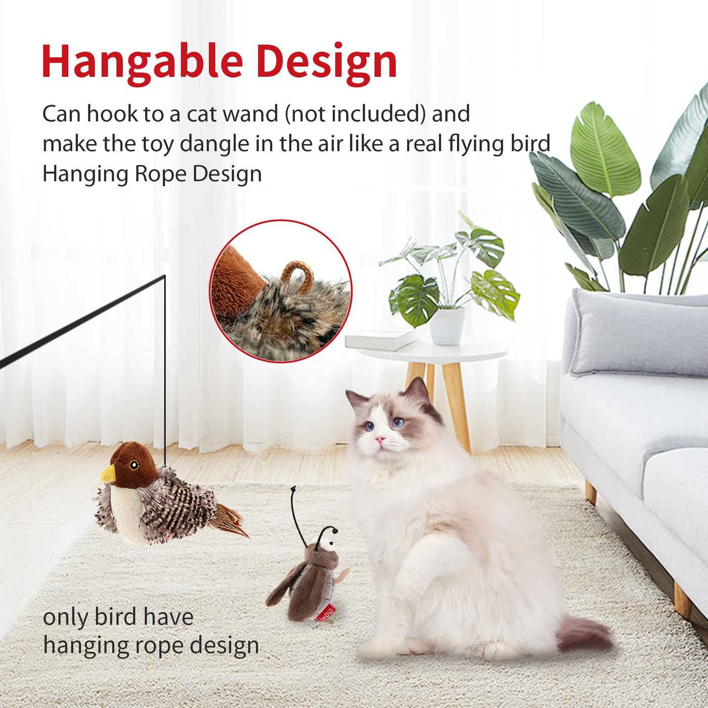 Petgeek Gigwi Simulated Chirping Bird Cat Toy, Fake Toys For Indoor Cats, Cat Feather Toy With Hanging Loop For Bored Indoor Adu