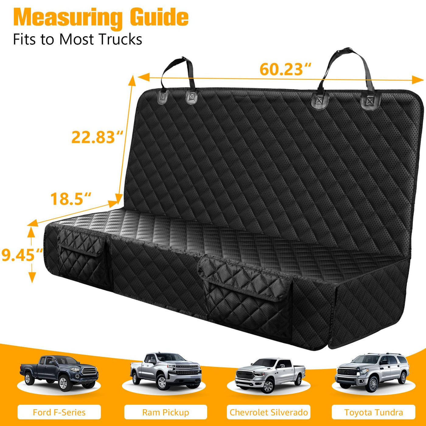 Ustomized For Truck: Measures 52 L X 48 W, It'S Niquely Designed And Customized For Truck. Such As Ford F150/Ram1500/Nissan Frontier/Toyota Tacoma/Gmc Canyon/Silverado/Chevrolet Silverado 1500 100% Waterproof & Scratch-Resistant Non-Slip Net Truck Seat Protection Easy To Install & Clean