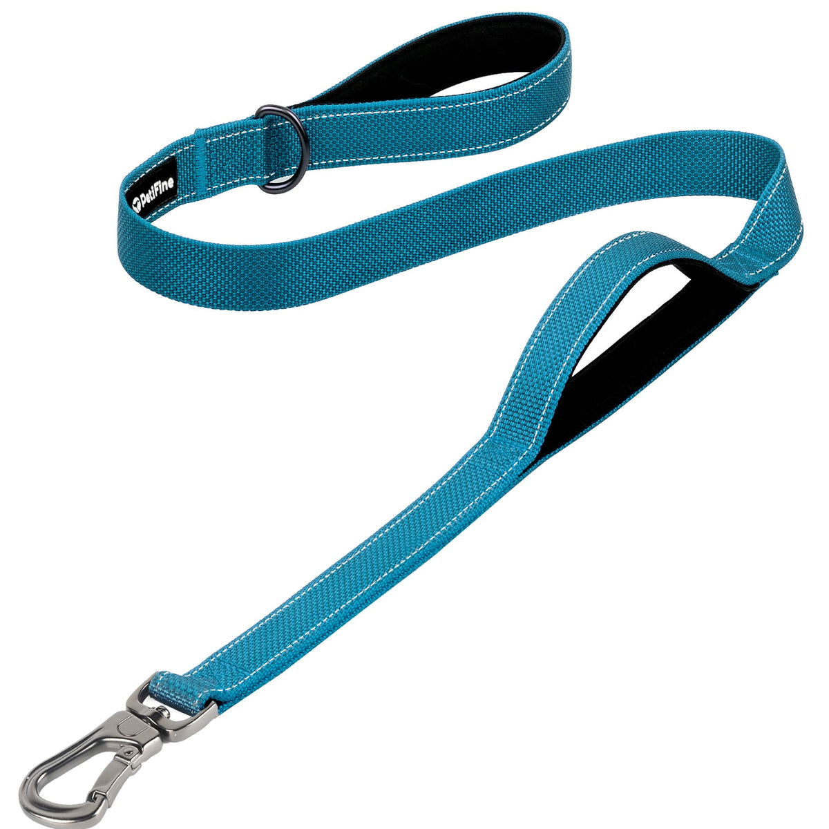 PetiFine 4FT Heavy Duty Dog Leash with Soft Padded Double Handle Durable Strong Clasp Dog Leashes Reflective Nylon Walking Lead for Large Medium Small Breed Dogs Blue
