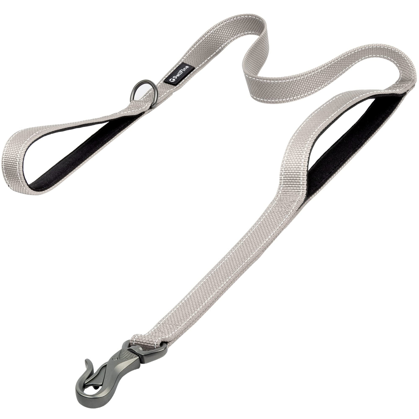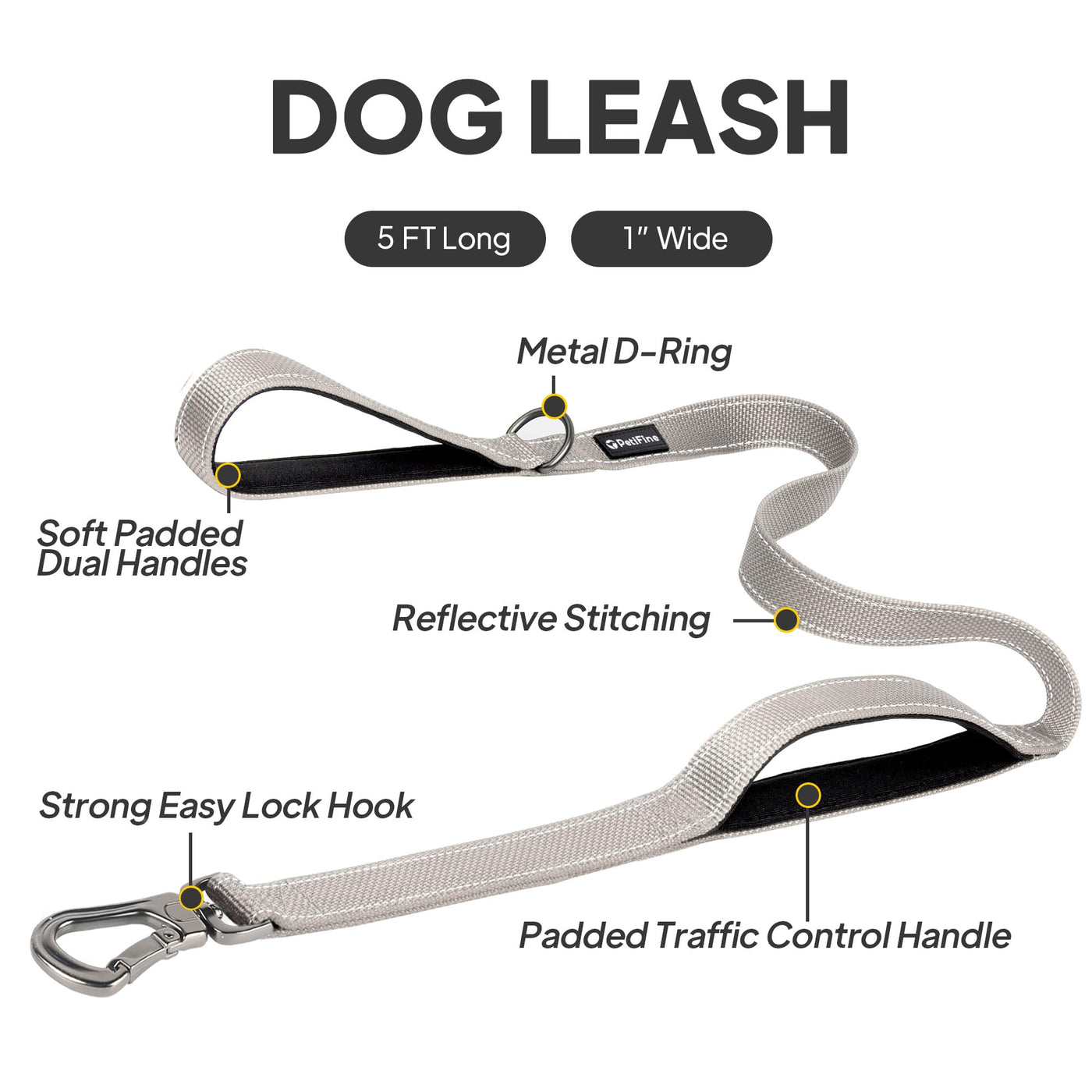 PetiFine 5FT Heavy Duty Dog Leash with Soft Padded Double Handle Durable Strong Clasp Dog Leashes Reflective Nylon Walking Lead for Large Medium Small Breed Dogs Grey