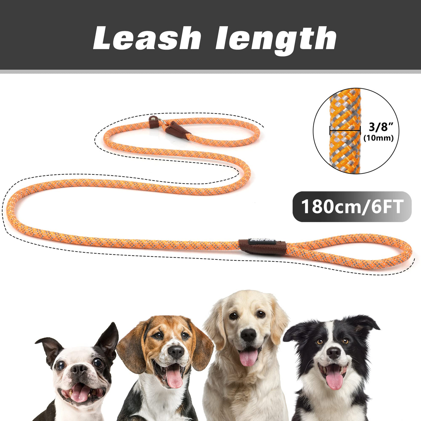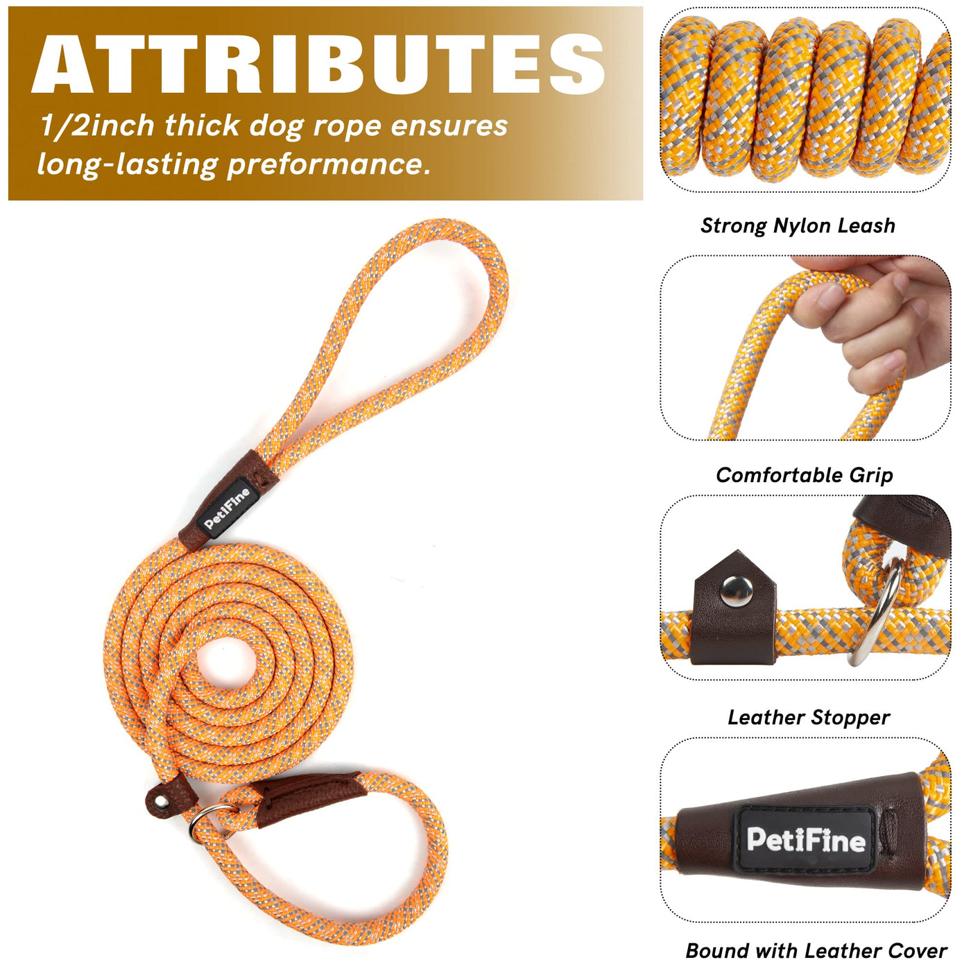 Petifine 6 Ft Slip Lead Dog Leash, Full Reflective Dog Training Leash, Heavy Duty Adjustable Pet Nylon Slip Rope Lead For Small Medium Large Dogs (3/8' X 6 Ft, Orange)