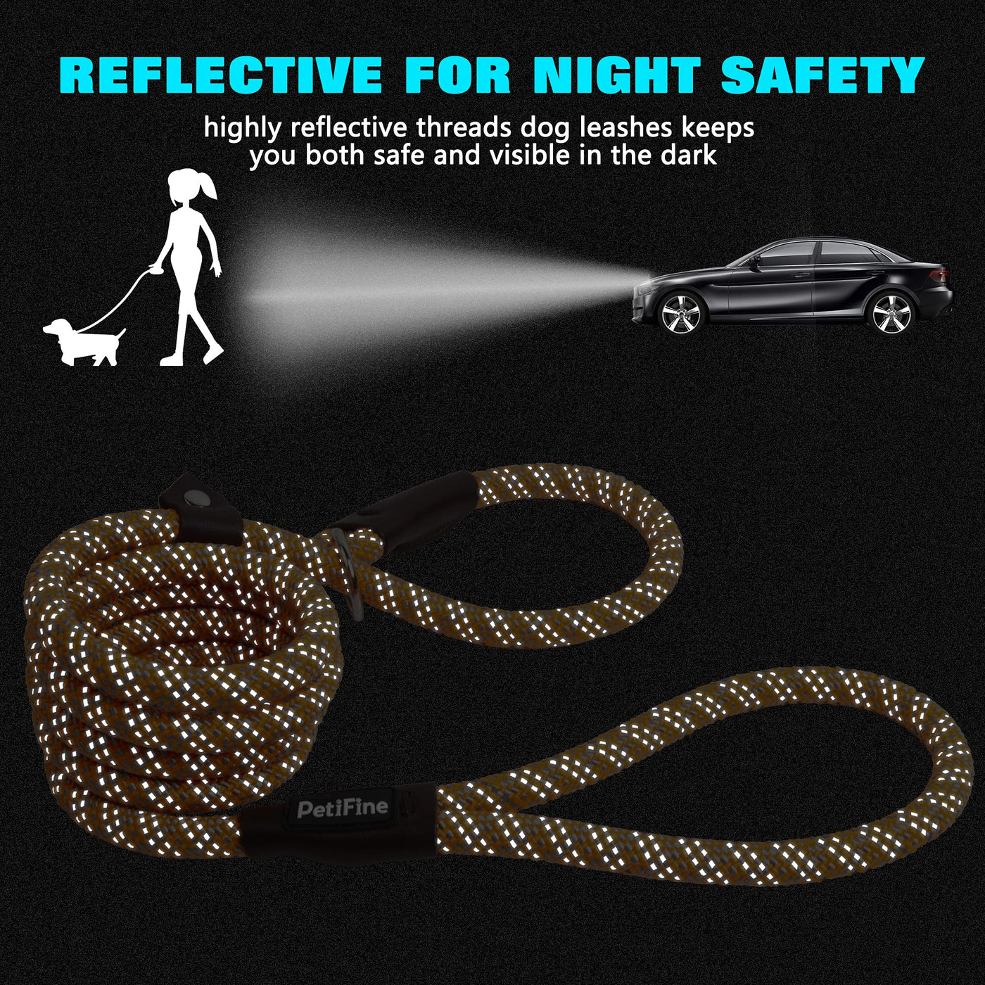 PetiFine 6 FT premium quality slip Lead dog rope leash is built with heavy-duty nylon material. It is extremely durable and comfortable. Great for walking , running and training. Benefits: One Size Fits All: Our slipknot leash with slide loop lets you customize the greatest comfort for your dog. It means that you don't need an extra collar or harness and the fully adjustable design fits all dogs. High visibility at night:This dog leash have reflective stitching that can improve security and can be seen more easily when you walking your dog in the dark. More Colors to Choose: We have 7 different colors, you can choose your favorite color. Dimensions:6FT long, 0.5in wide dog rope leash give your dog enough freedom and ideal control in almost any situation. Warm tip: Please don't allow your dog to chew this leash.